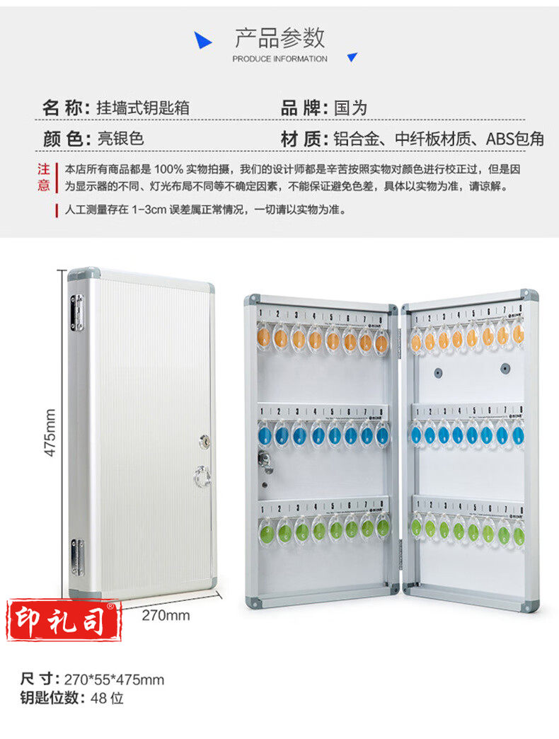 国为(COUVEZI) 铝合金钥匙收纳 钥匙管理箱/钥匙盒/钥匙柜壁挂含钥匙牌 48位钥匙箱带锁