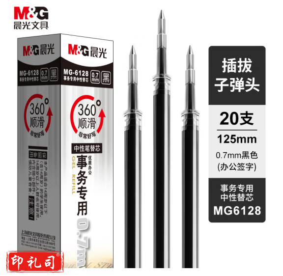 晨光(M&G) MG6128 0.7mm黑色中性笔芯 20支/盒(单位:盒)