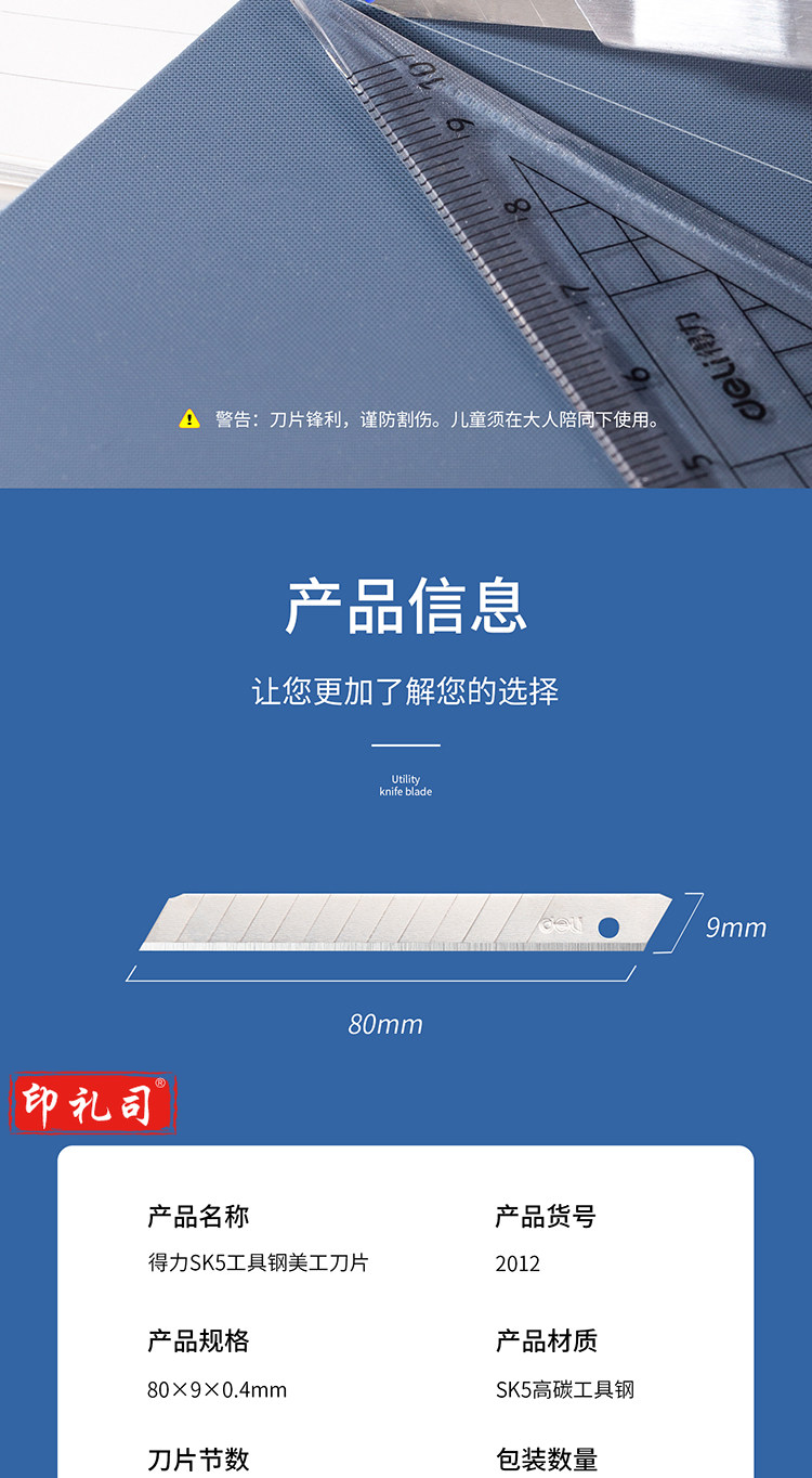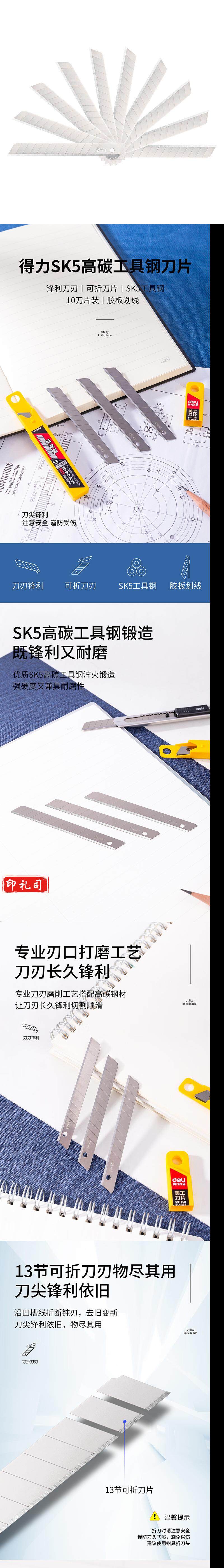 得力2012小号美工刀片(银色)(10片/盒*10)