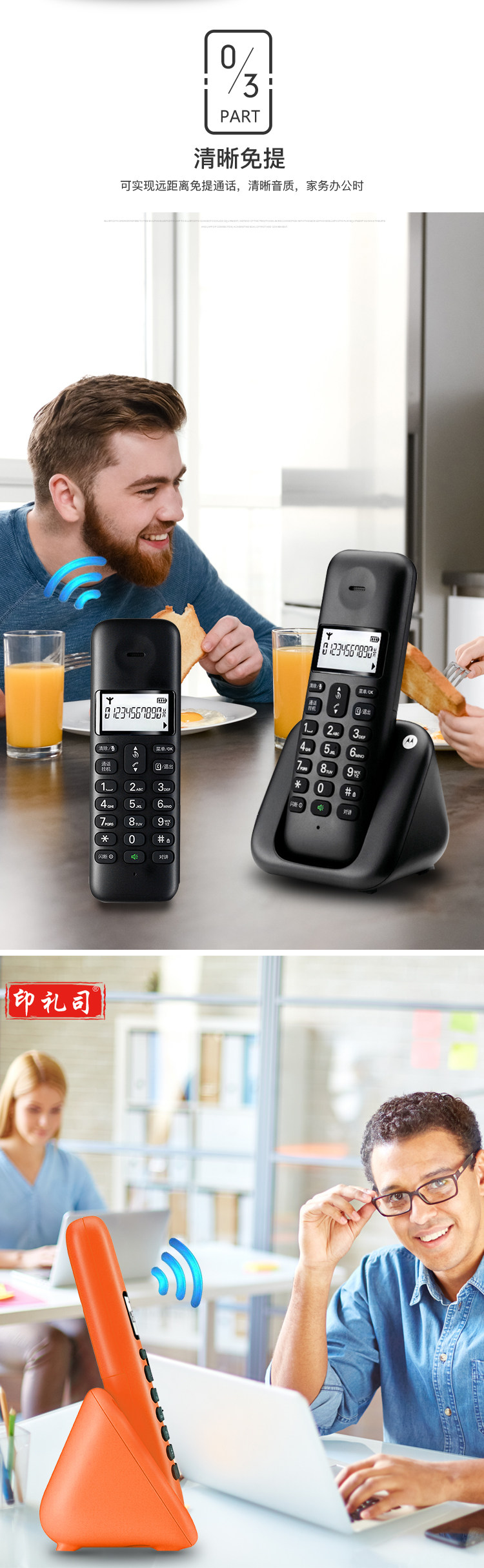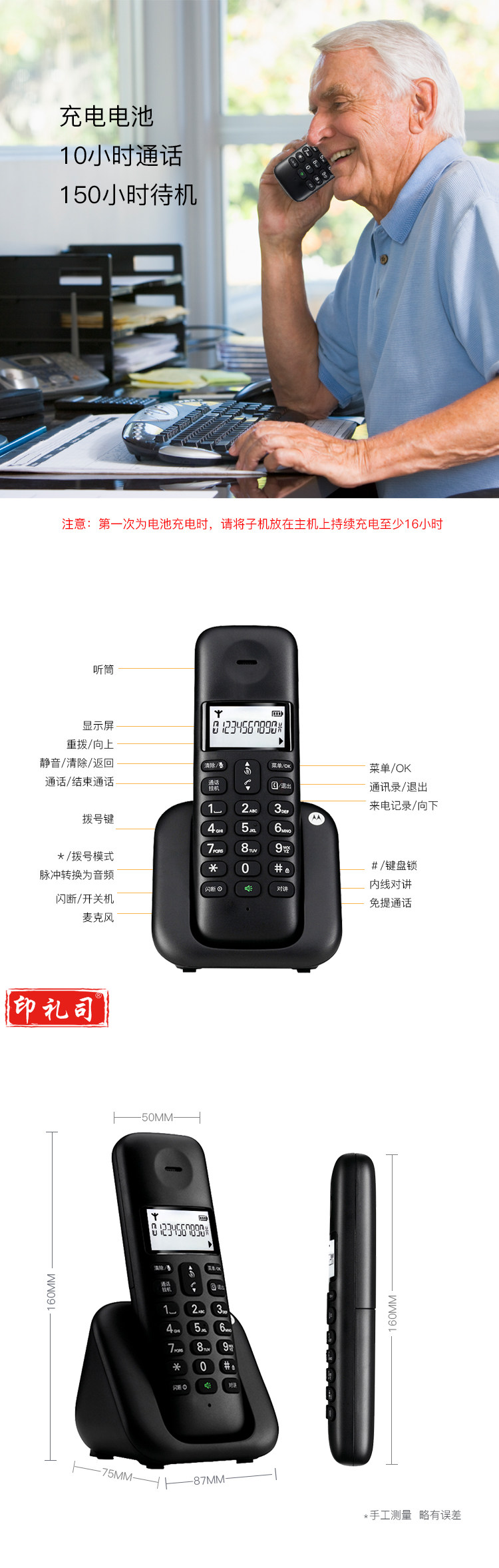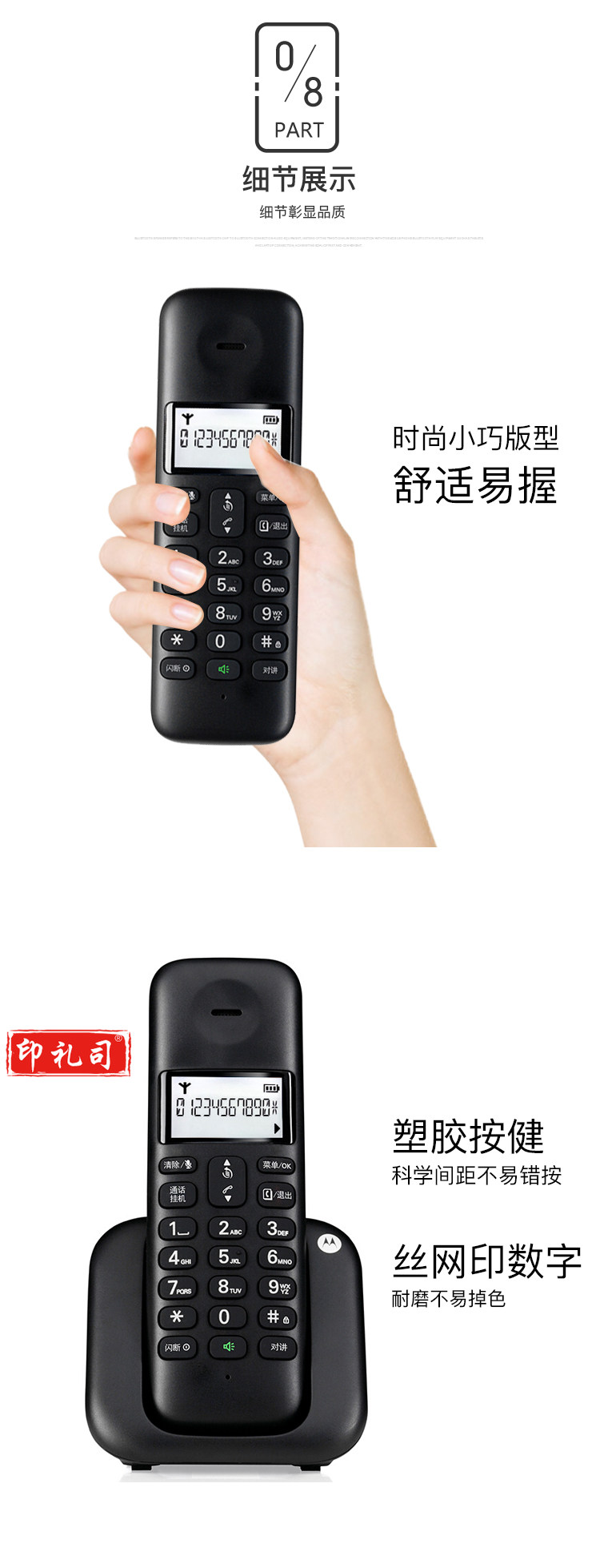 摩托罗拉(Motorola)T301C数字无绳电话机 无线座机 单机 大屏幕白色背光 清晰免提 办公家用 (黑色)