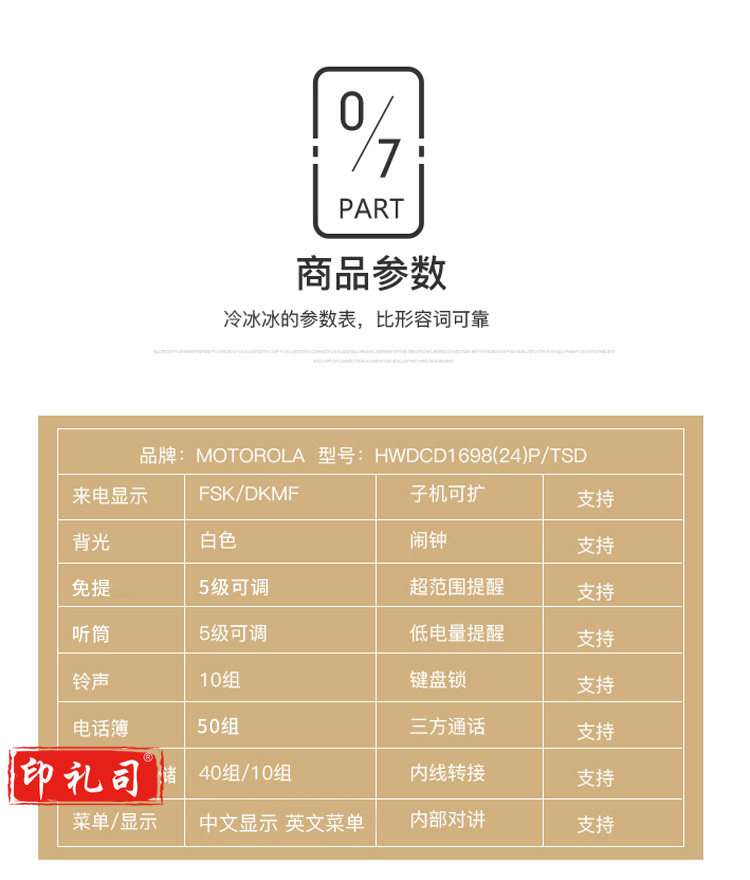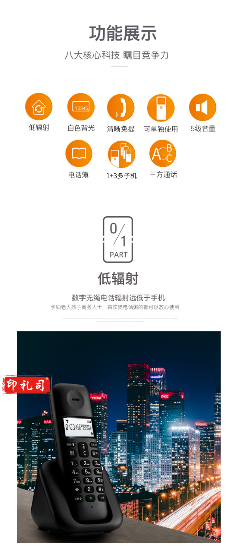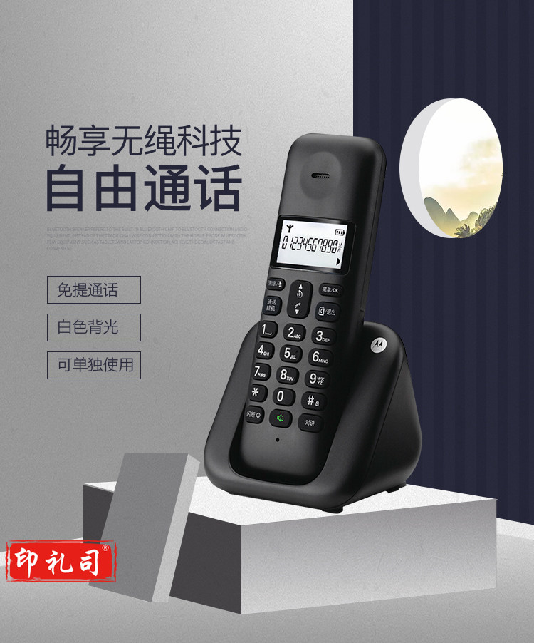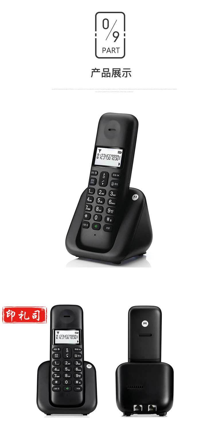 摩托罗拉(Motorola)T301C数字无绳电话机 无线座机 单机 大屏幕白色背光 清晰免提 办公家用 (黑色)