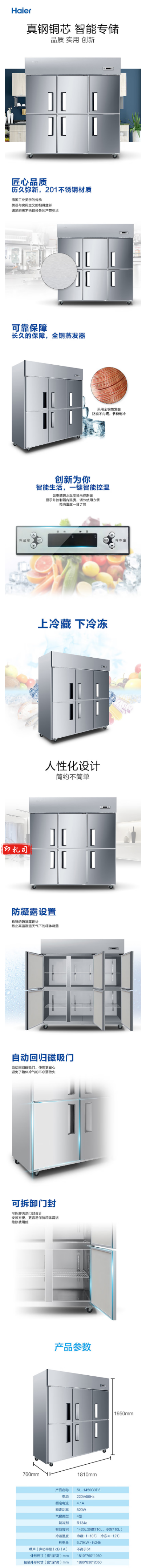 海尔(Haier)商用厨房冰箱3门不锈钢 SL-1450C3D3
