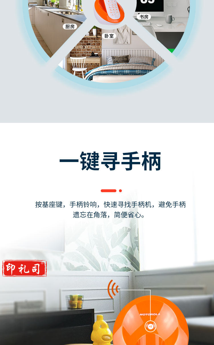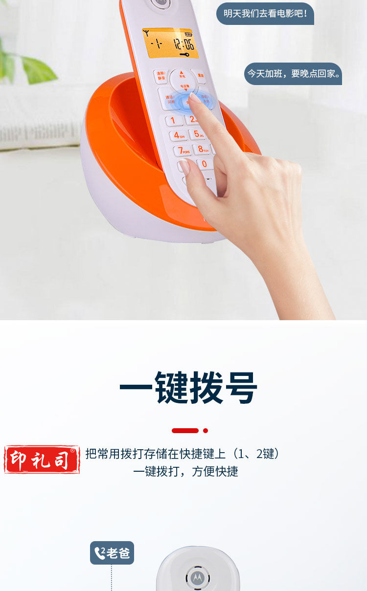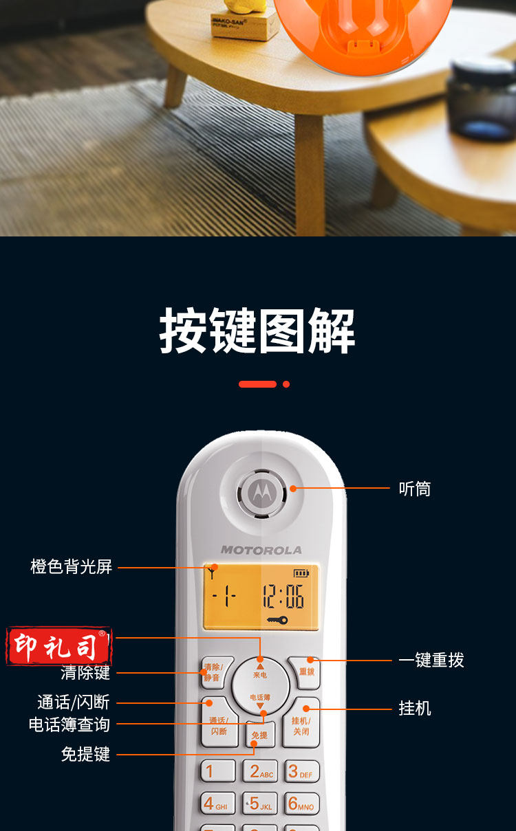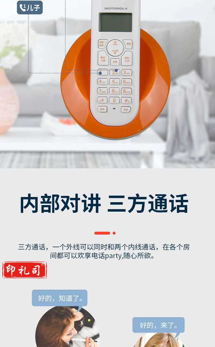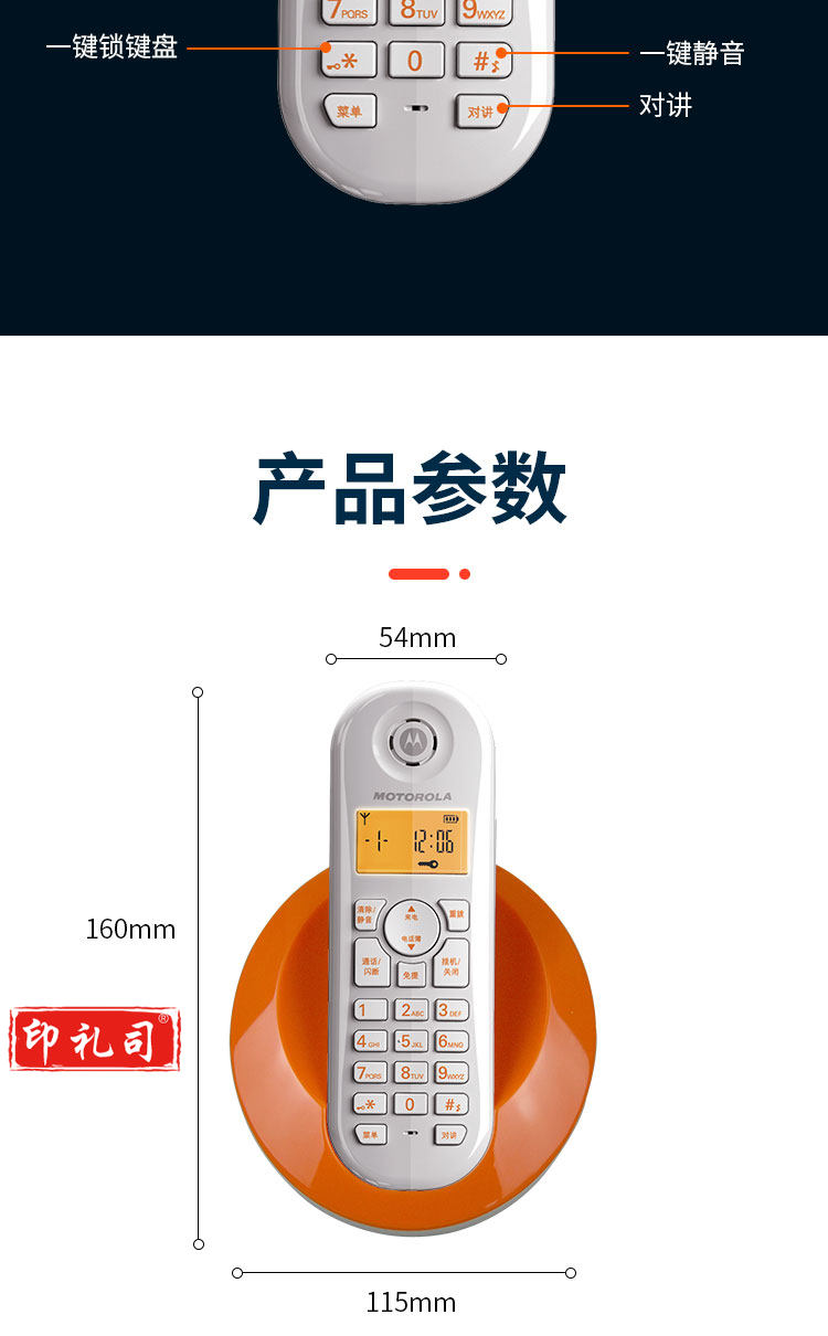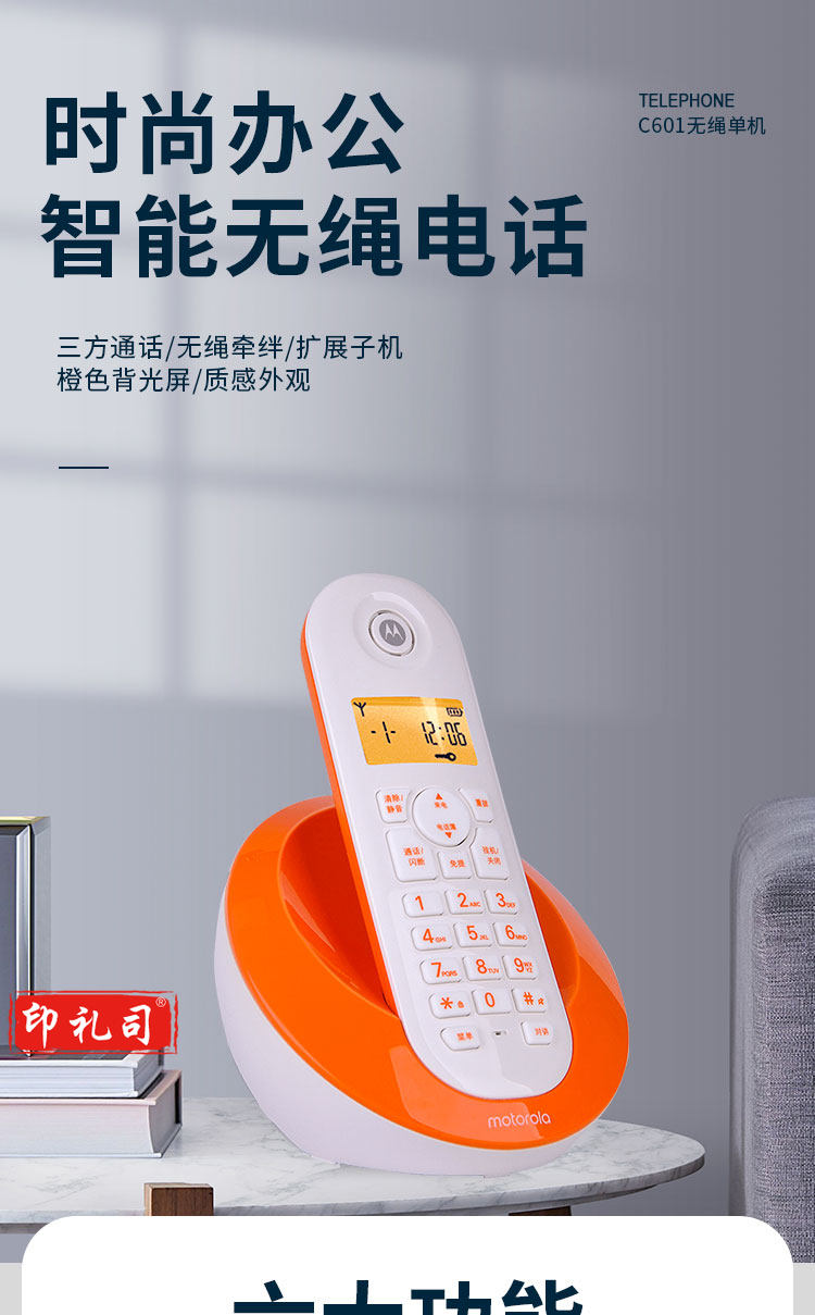 摩托罗拉/MotorolaC601数字无绳电话机无线座机单机大屏幕清晰免提办公家用 橙色