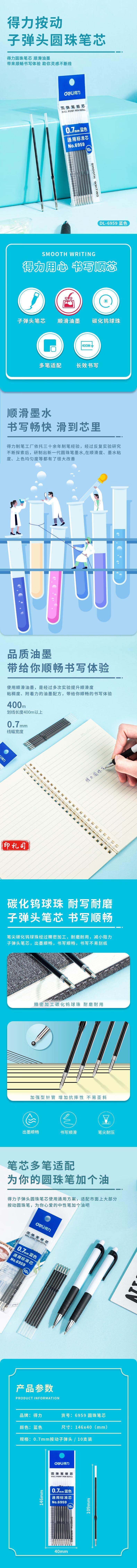 得力6959圆珠笔芯0.7mm子弹头(蓝)(10支/包*10)