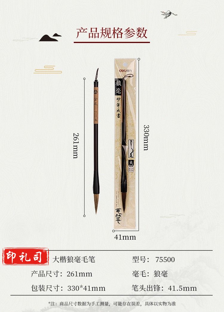 得力75500狼毫毛笔大号(深棕色)(10支)