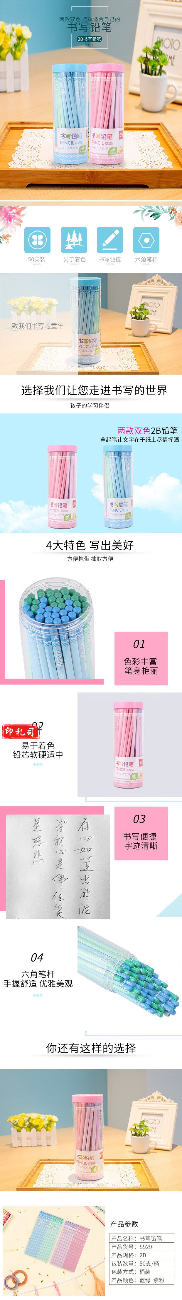 得力S929铅笔(粉)(50支/筒)