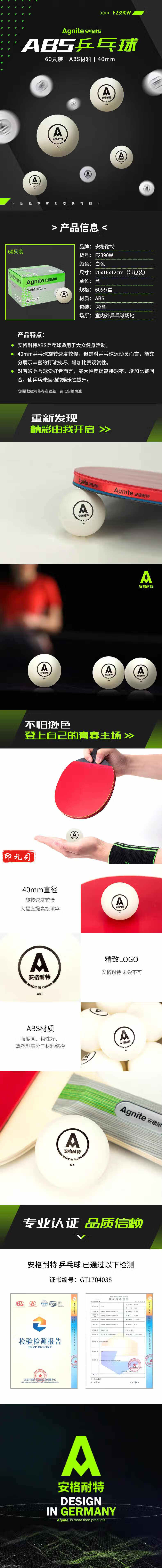 安格耐特F2390W乒乓球(白色)(60个/盒)