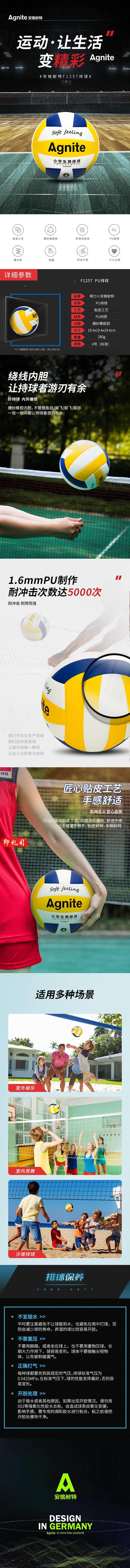 安格耐特F1257_4号小学生用PU贴皮排球(白色+黄色+蓝色)(个)