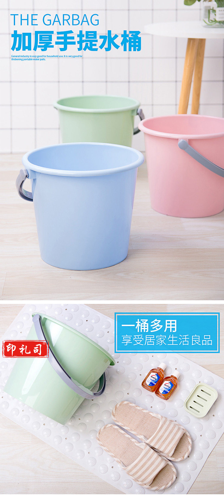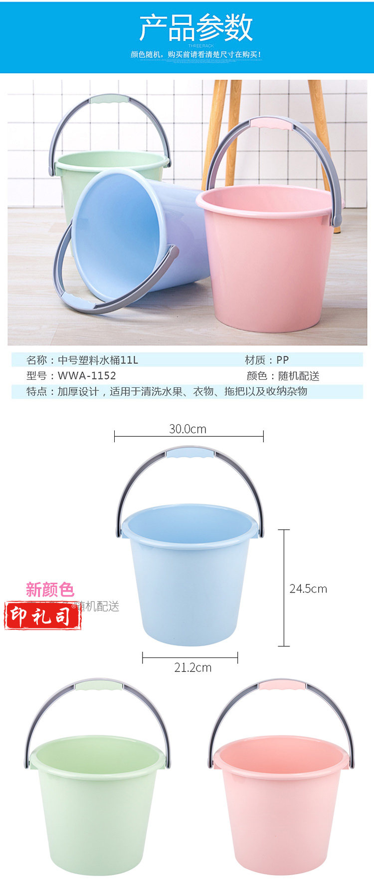 中号水桶11L 家用水桶 加厚塑料桶 清洁提桶(颜色随机)