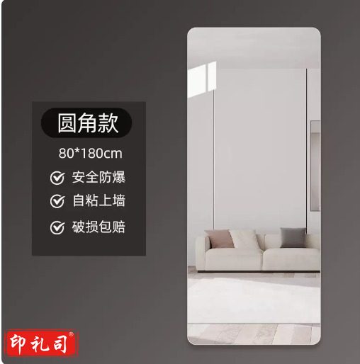 镜子贴墙自粘高清试衣穿衣镜家用墙面镜面贴纸亚克力软镜子全身镜 80*180cm 圆角款