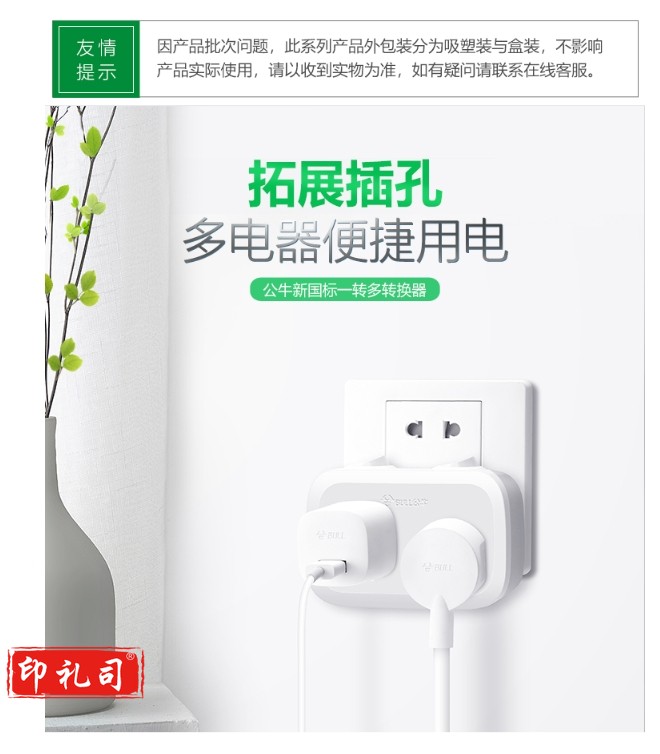 公牛GN-9323 一转二插座 2位分控无线转换插座