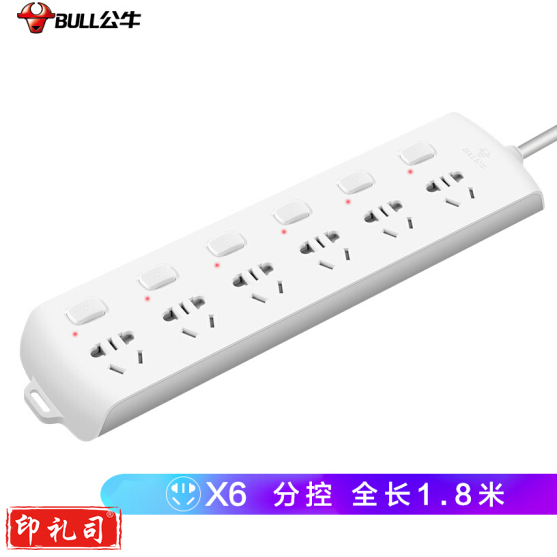 公牛(BULL) GN-B2063 插线板 6位分控全长1.8米