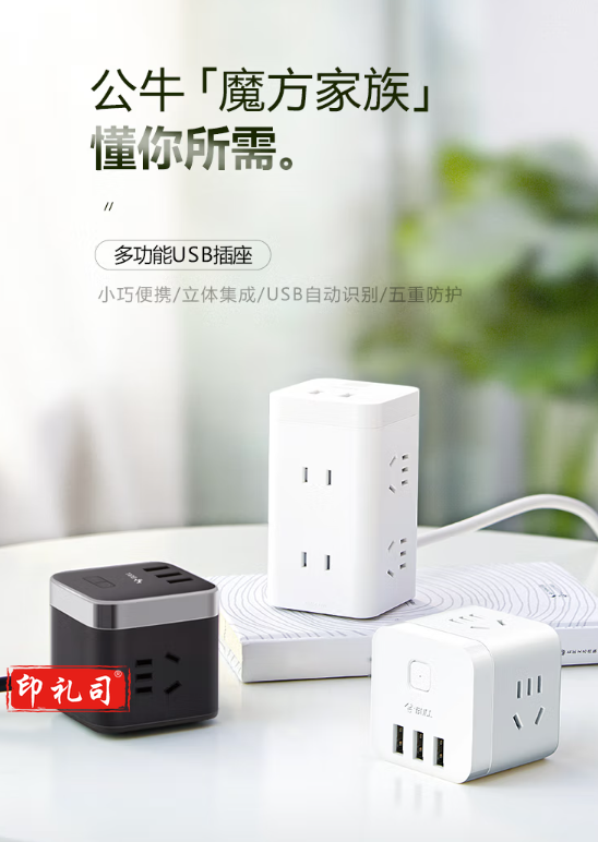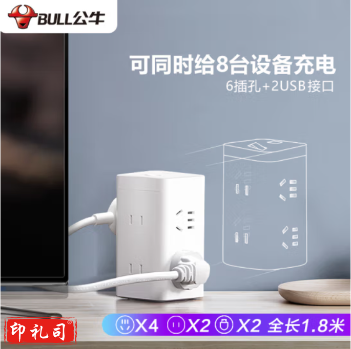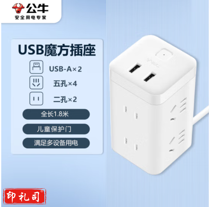 公牛(BULL) GNV-UU2126 大魔方智能USB插座 插线板/插排/排插/接线板/拖线板 白色魔方USB插座全长1.8米