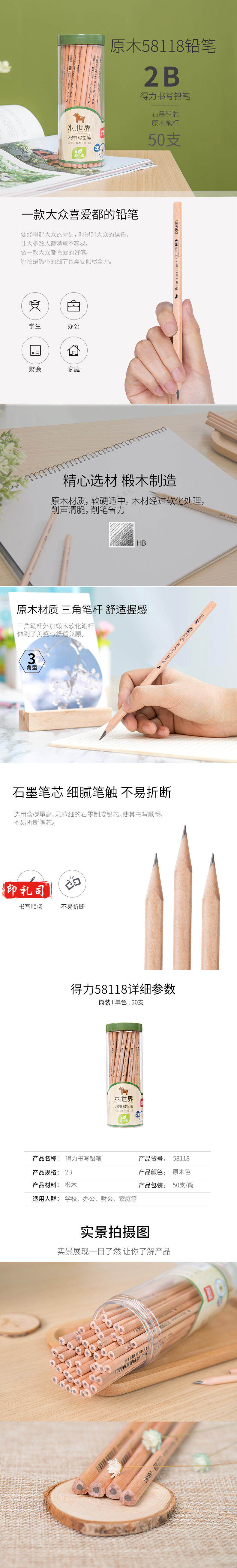 得力58118-2B原木书写铅笔(原木色)(50支/筒)