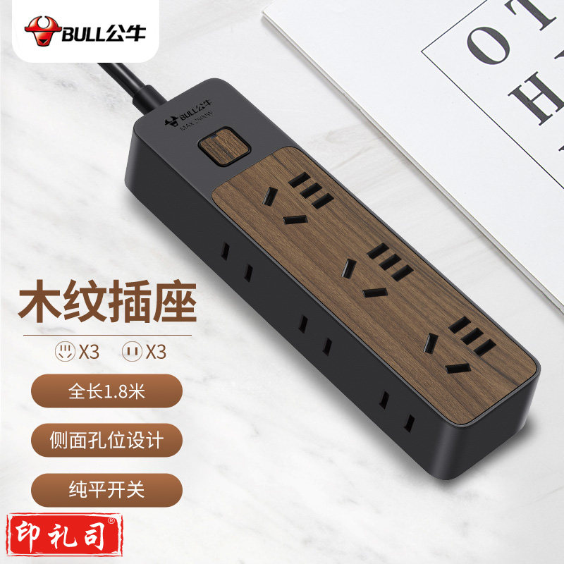 公牛(BULL)新国标插座/插线板/插排/排插/接线板/拖线板 6位总控1.8米 黑色木纹 GN-R1330