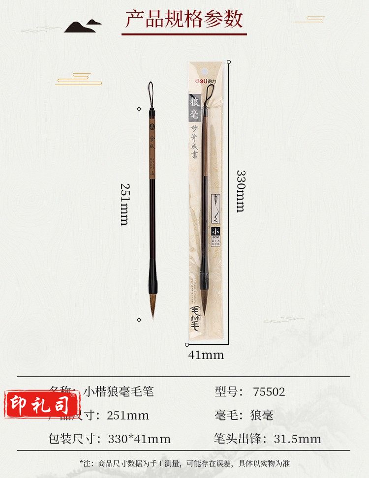 得力75502狼毫毛笔小号(深棕色)(10支)