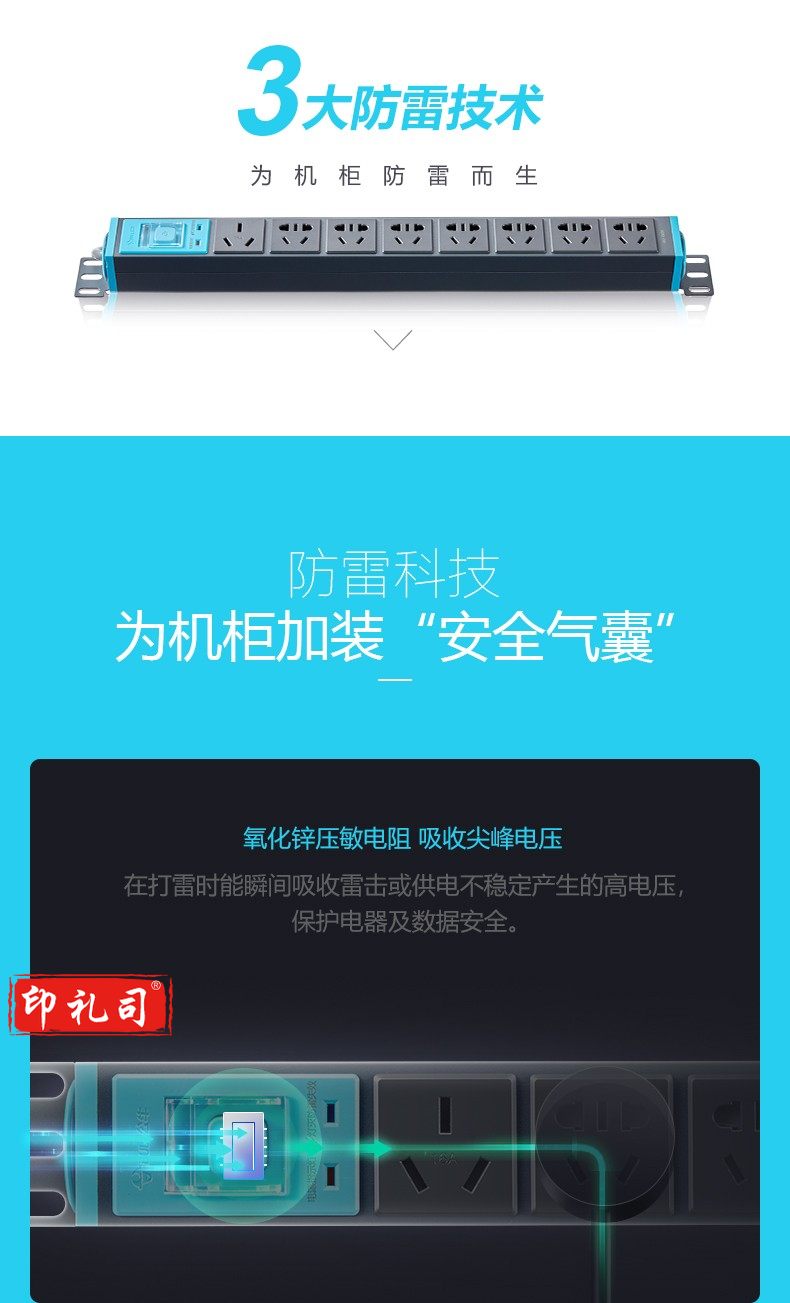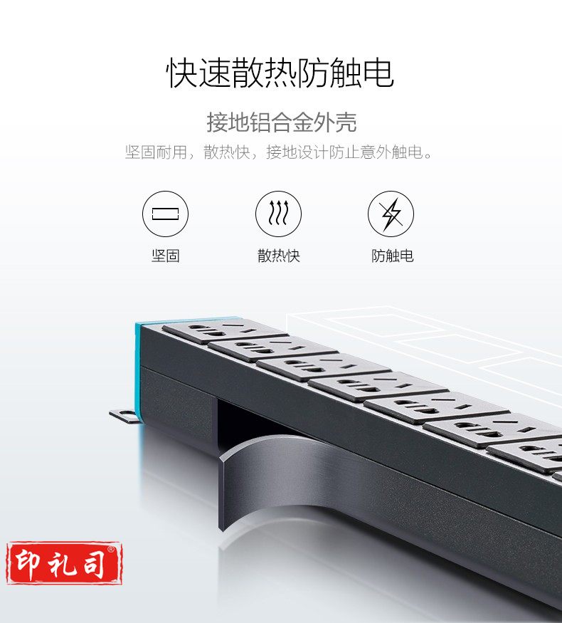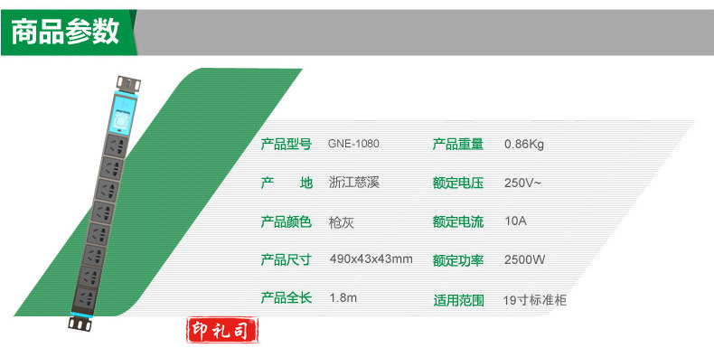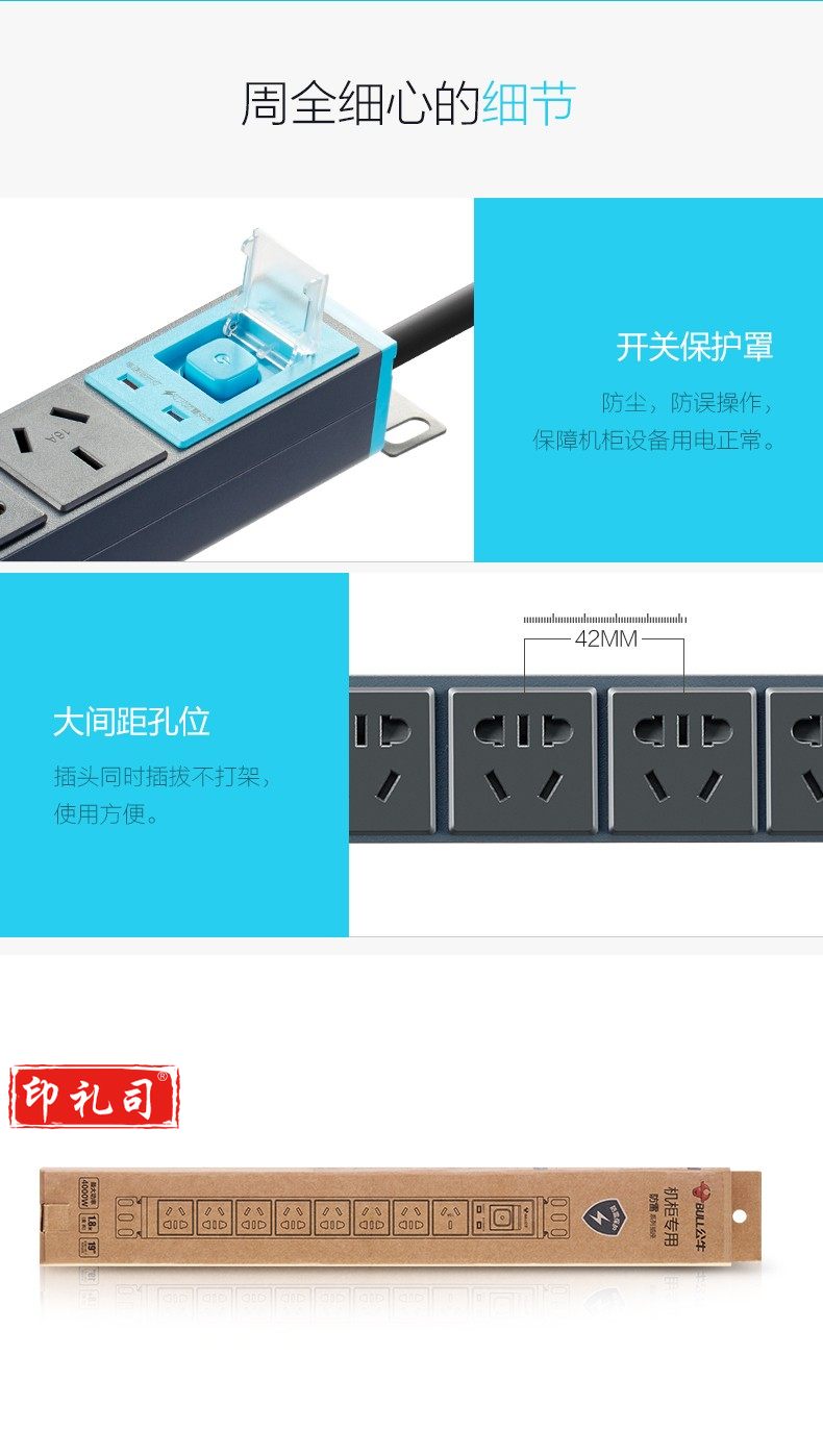 公牛(BULL) GNE-1080 机柜专用插排拖线板插座 8位总控 1.8米 10A 250V