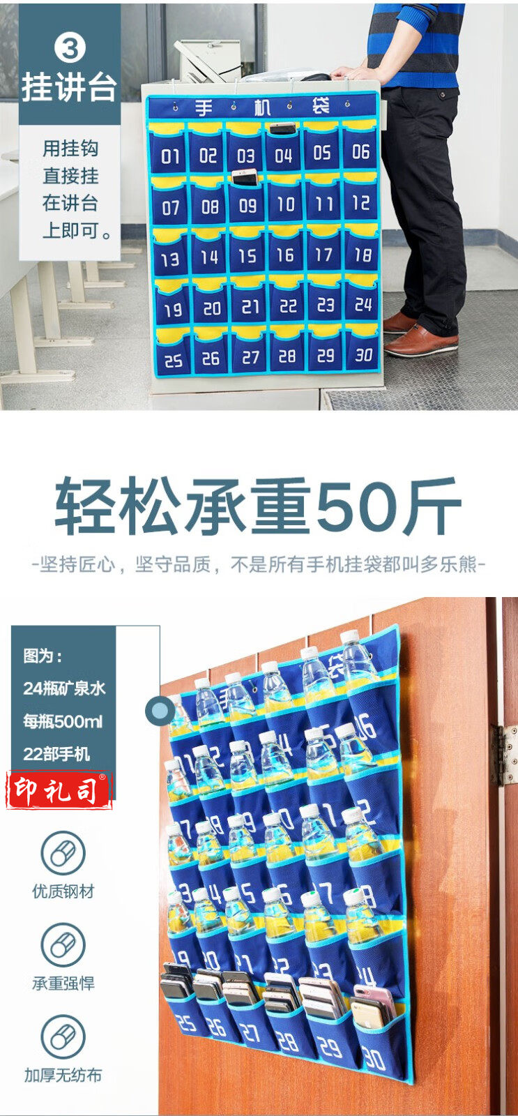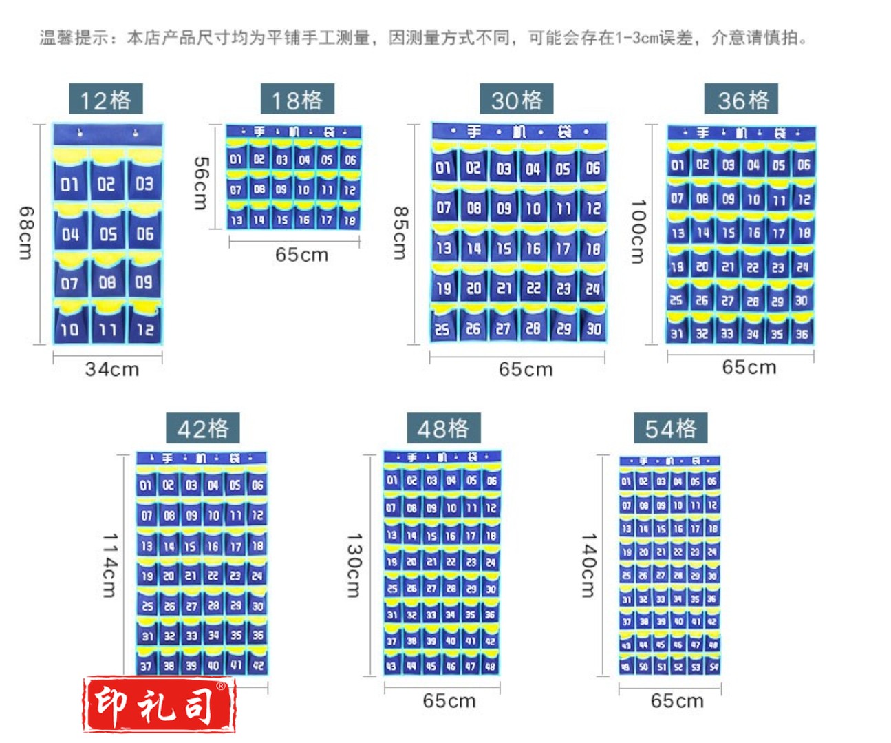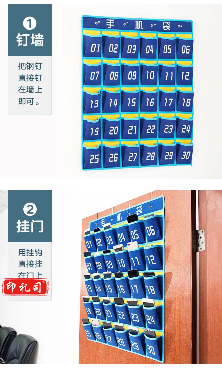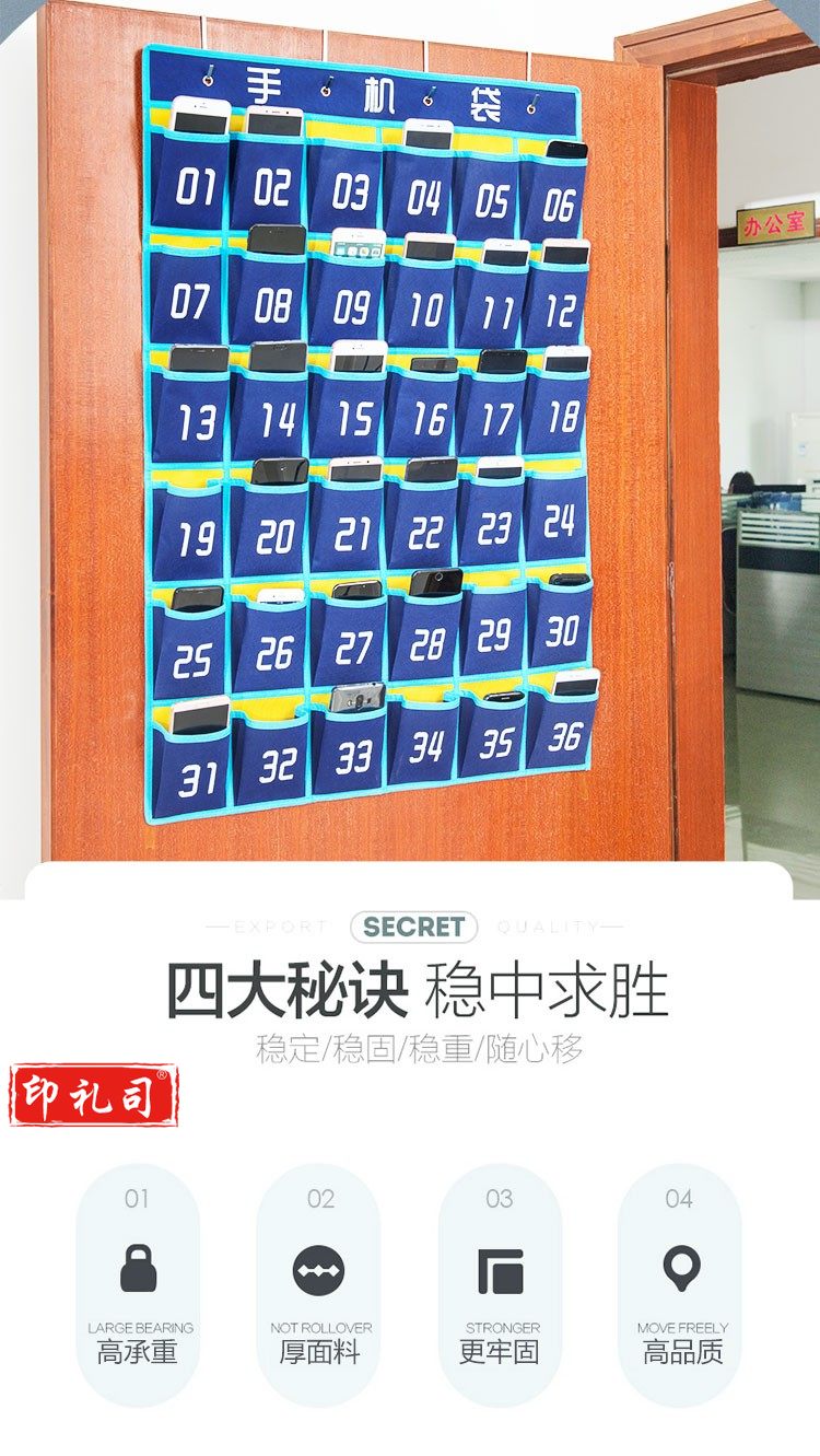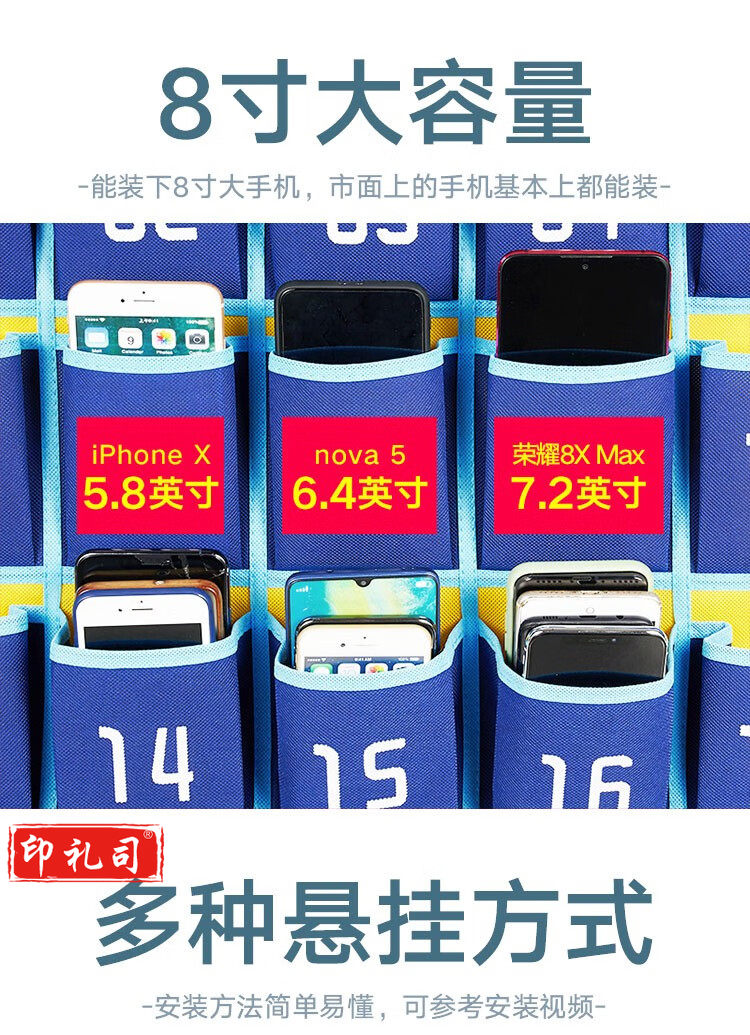 数字款手机挂袋收纳袋教室多格存放手机袋子布袋挂墙挂式会议室48格