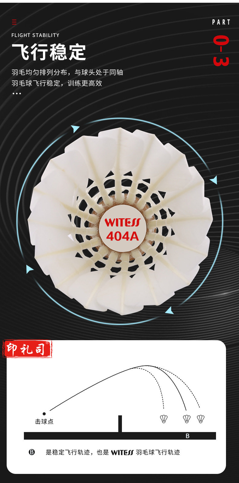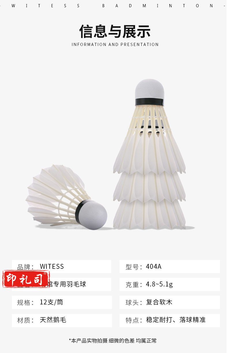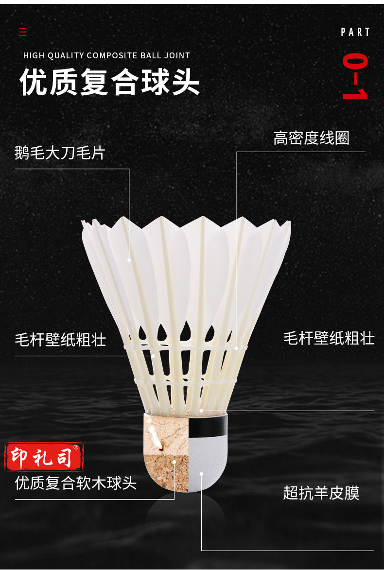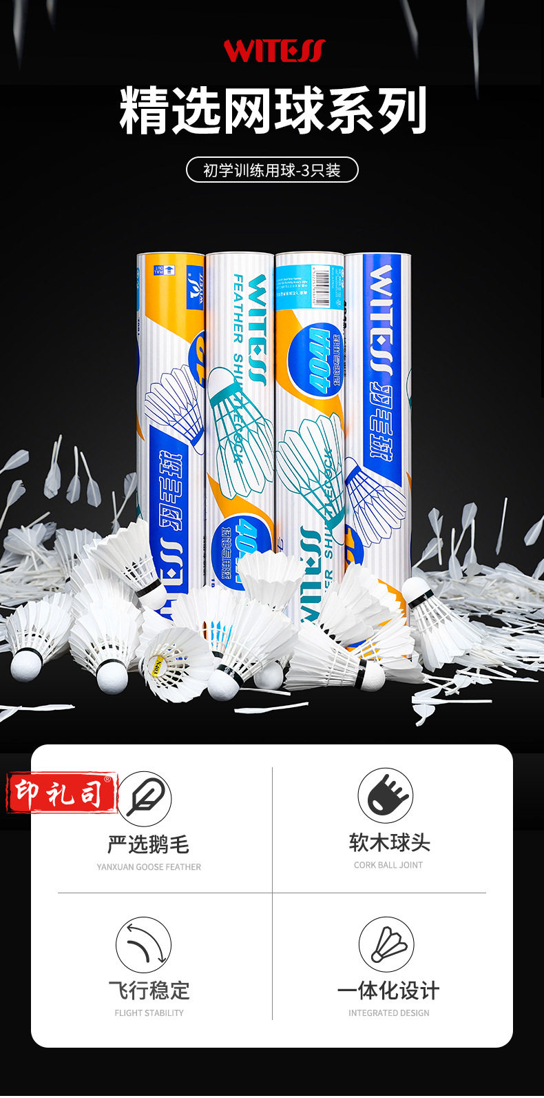 WITESS/目击者 羽毛球软木耐打王鹅毛室内室外训练打不易烂羽毛球12只装