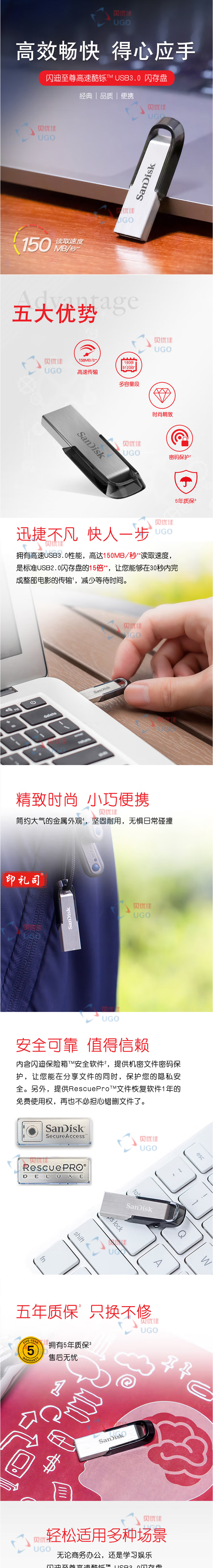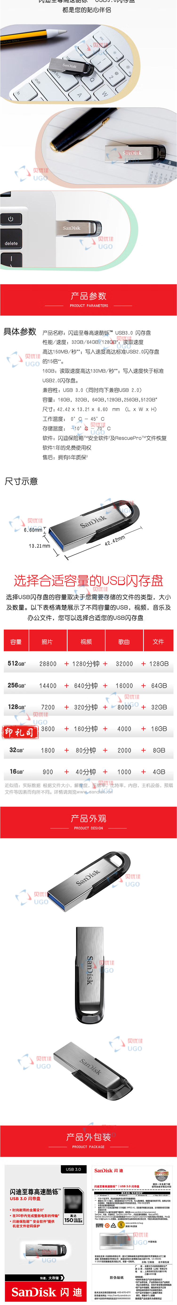 闪迪 (SanDisk) 128GB U盘CZ73 安全加密 高速读写 金属优盘 USB3.0