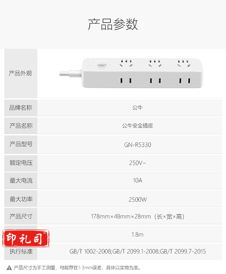 公牛(BULL)GN-R5330新国标插座/插线板/插排/排插/接线板/拖线板 6位总控1.8米