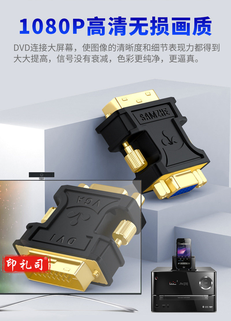 山泽(SAMZHE) ZH-333 DVI公转VGA母转接头直通头DVI24 5/DVI-I转VGA延长线