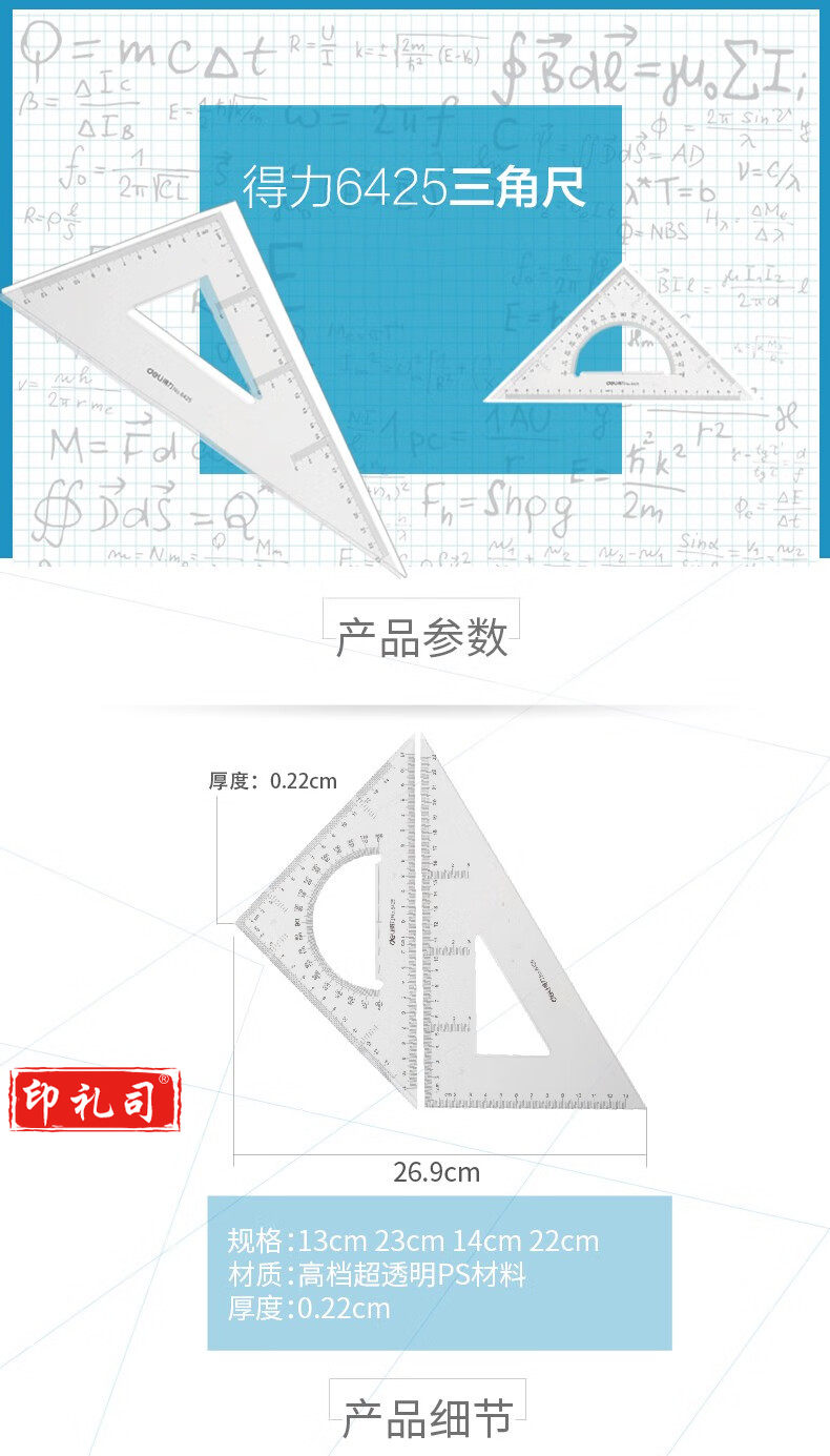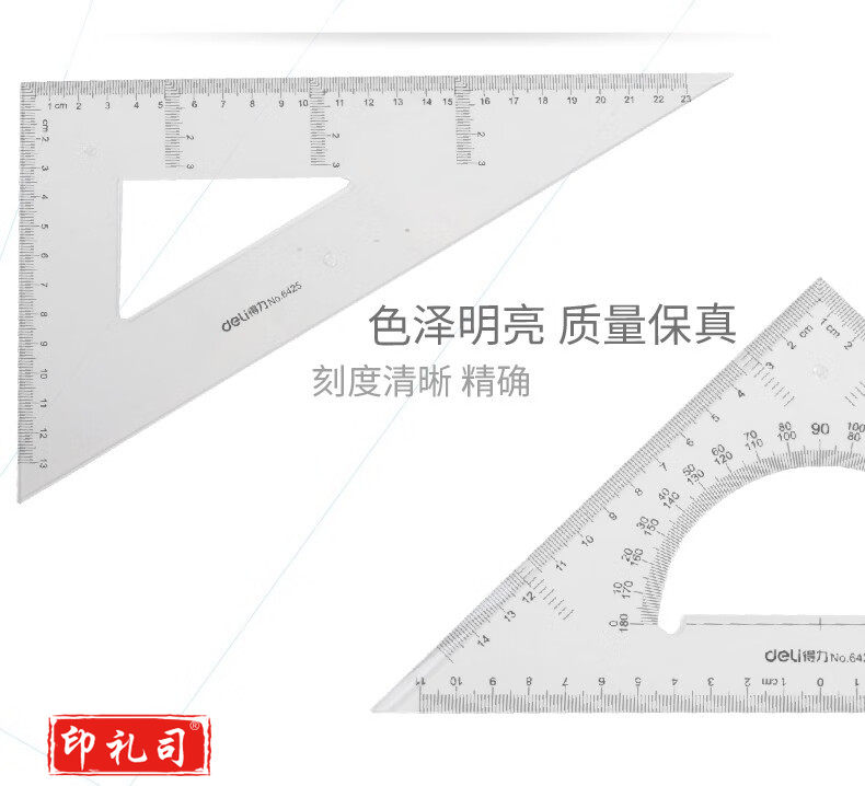 得力6425三角尺23cm(透明本色)(10套)