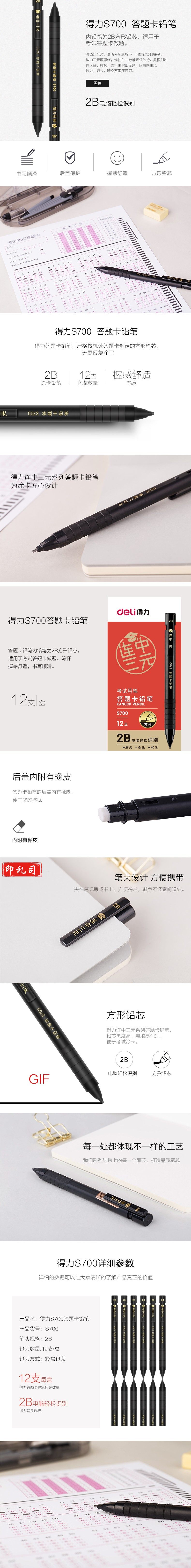 得力S700连中三元答题卡铅笔 2B(黑)(12支)