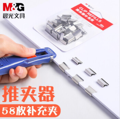 晨光 (M&G)*ABS916A7 金属推夹器 夹纸器/装订器补充夹 文件夹子装订套装(推夹器*1+替换夹*8) 单卡装