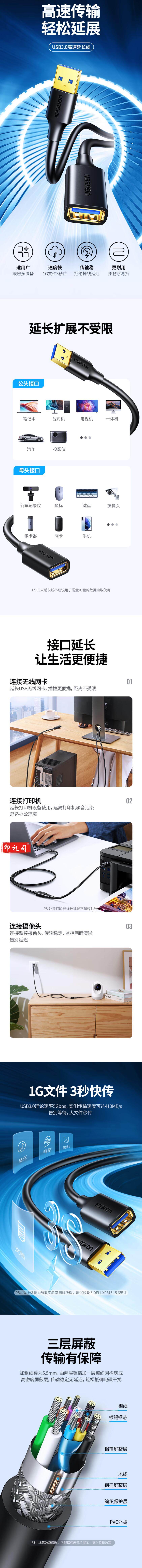 绿联 USB3.0 延长线公对母 高速传输数据连接线 加长转接线10368