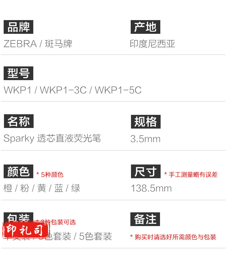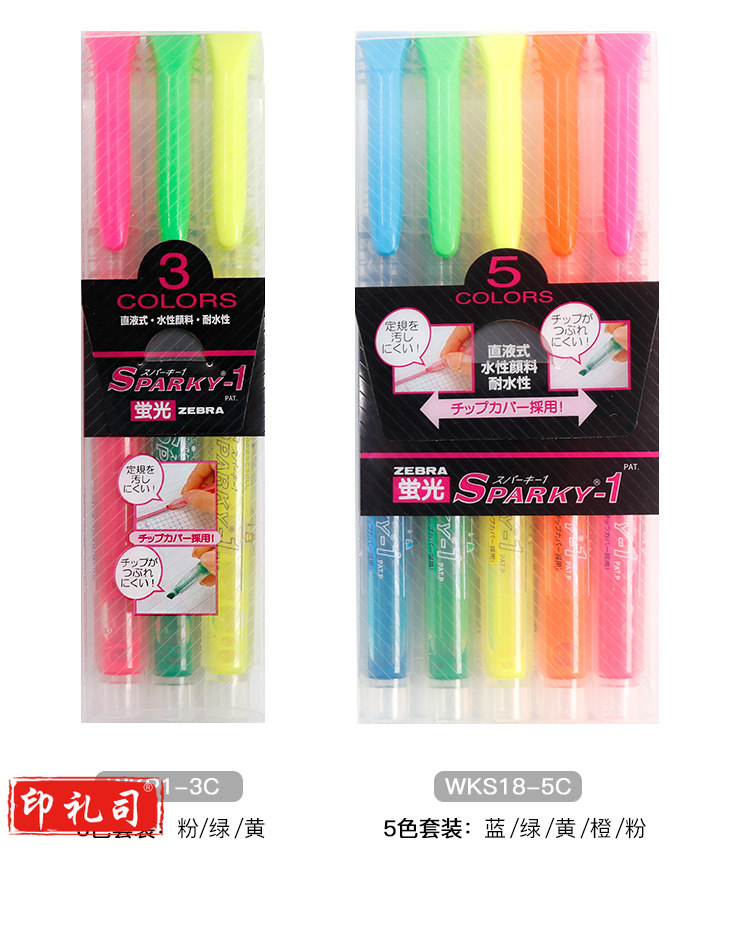 斑马牌 透芯直液荧光笔 WKP1 橙色 SPARKY系列单色划线记号笔