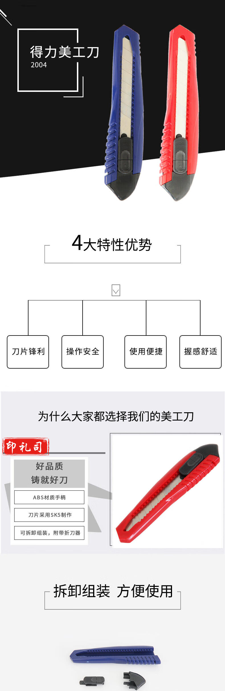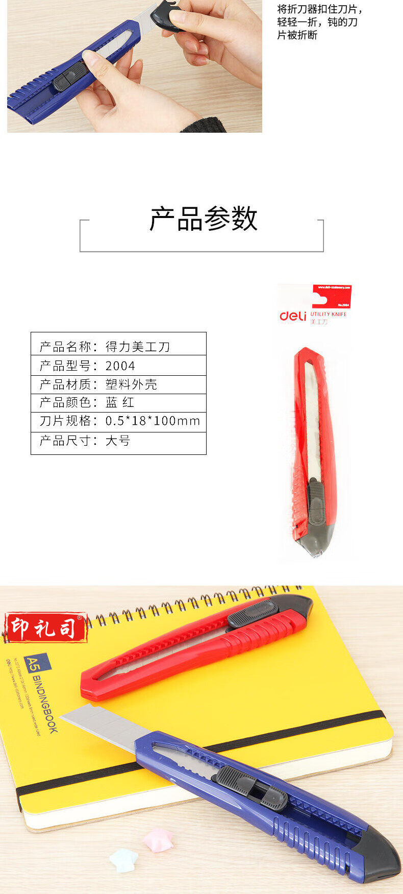 得力2004大号美工刀10把装(蓝色)