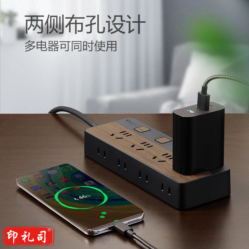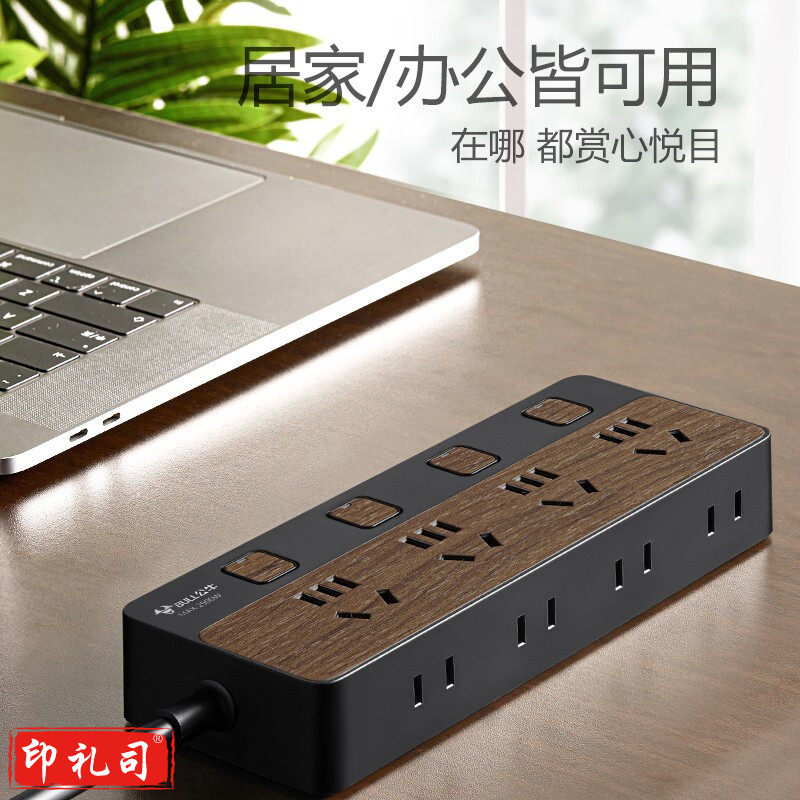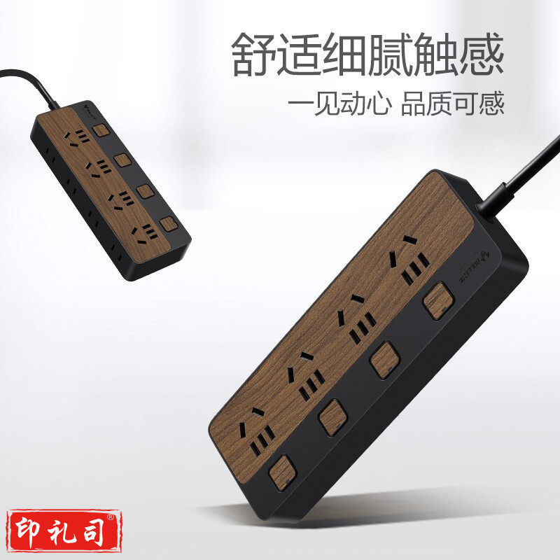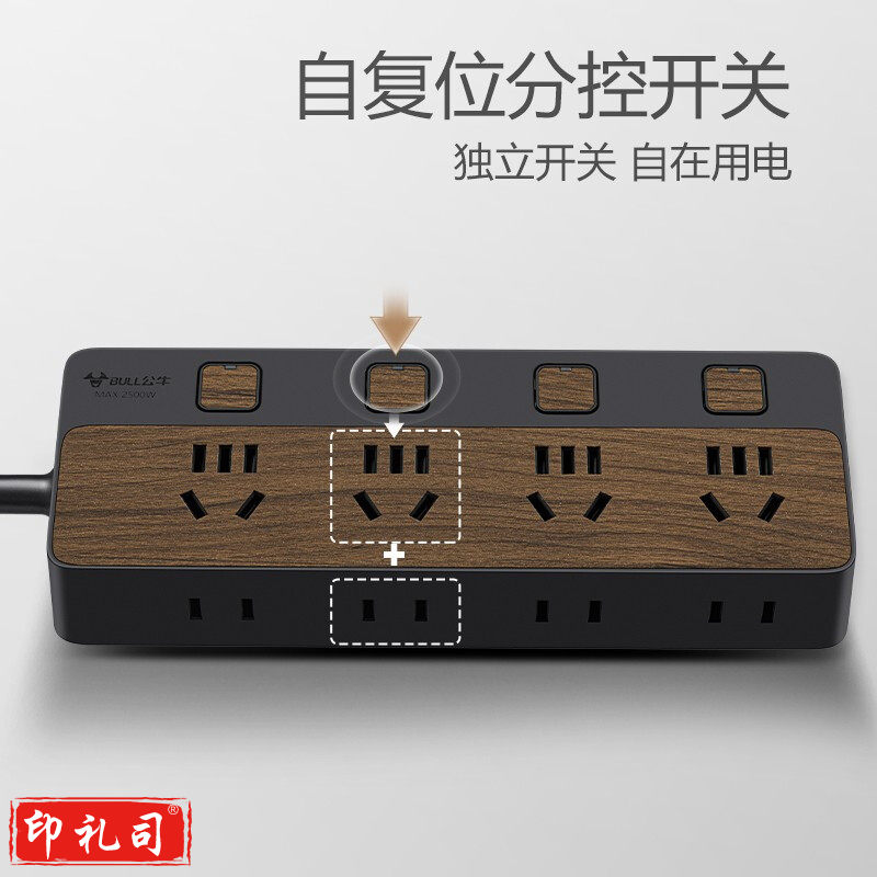 公牛(BULL) GN-R1443 新国标插座/插线板/插排/排插/接线板/拖线板 8位分控1.8米 黑色木纹.