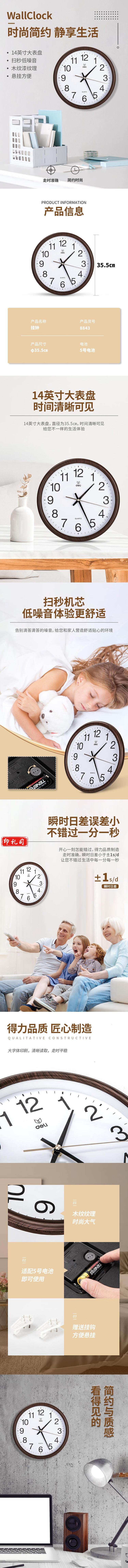 得力8843木纹挂钟(14寸)(木纹)