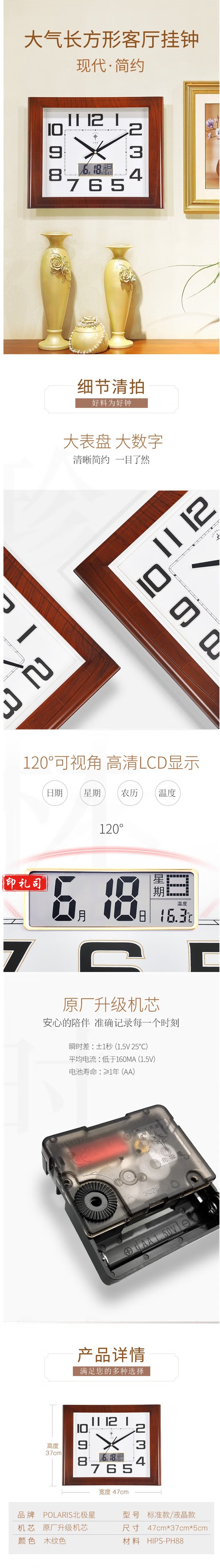 北极星(POLARIS)挂钟大方形万年历石英钟19英寸木纹(NPX) TJHX02250914285972