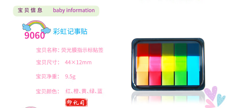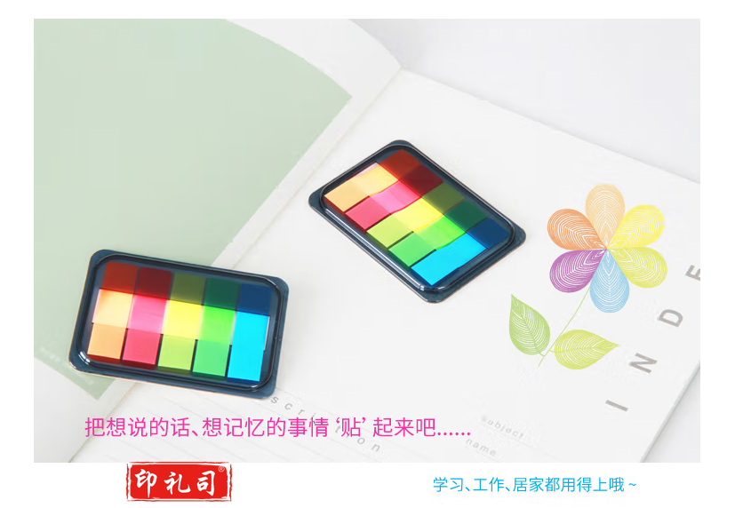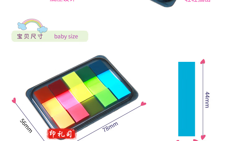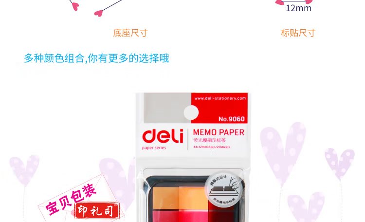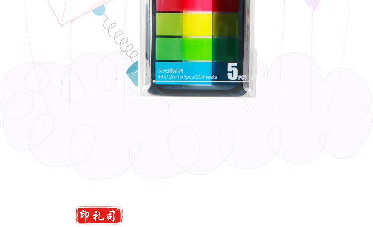 得力(deli)9060 五色荧光膜指示标签贴100张 44*12mm 抽取式便利贴便签条记事贴