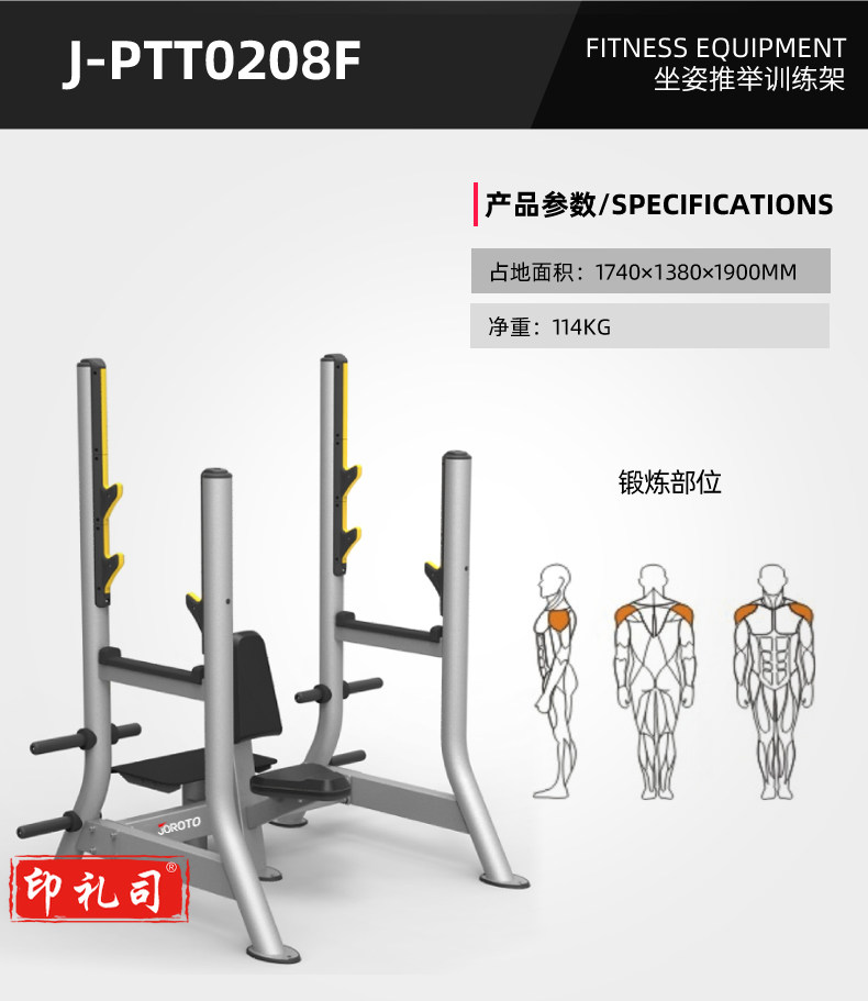 捷瑞特 J-PTT0208F 坐姿推举训练架 1740mm*1380mm*1900mm 银色