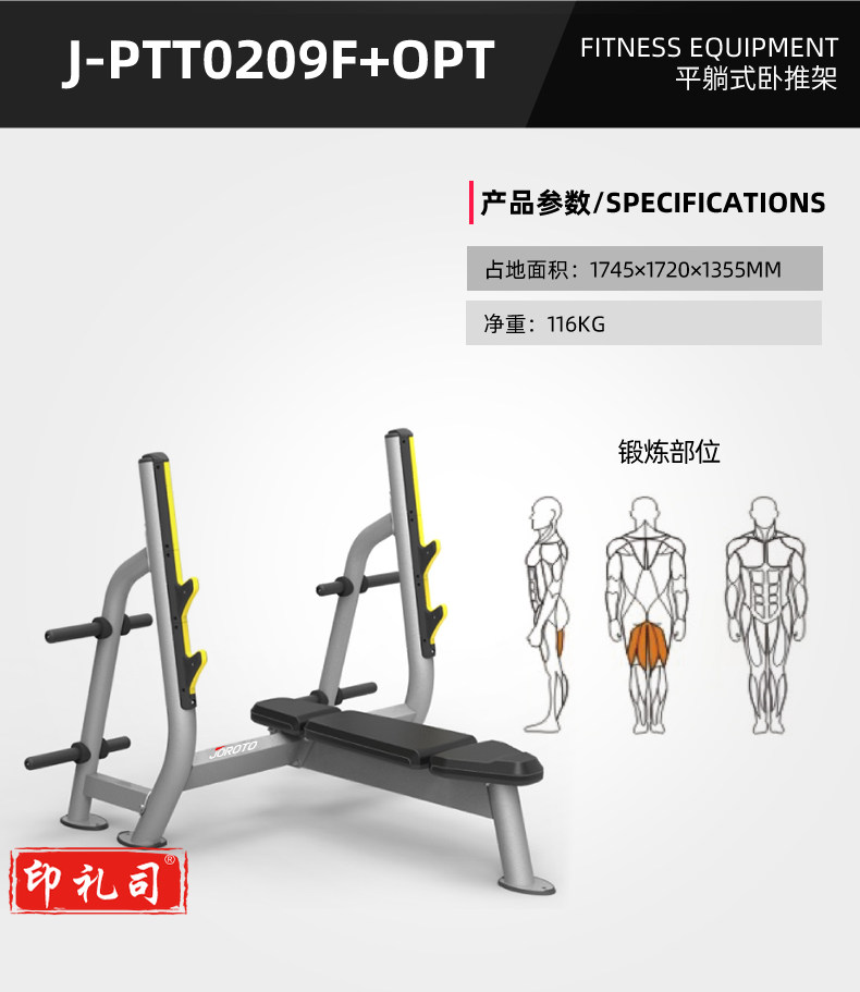 捷瑞特 J-PTT0209F+OPT 平躺式卧推架 1745mm*1720mm*1355mm 银色