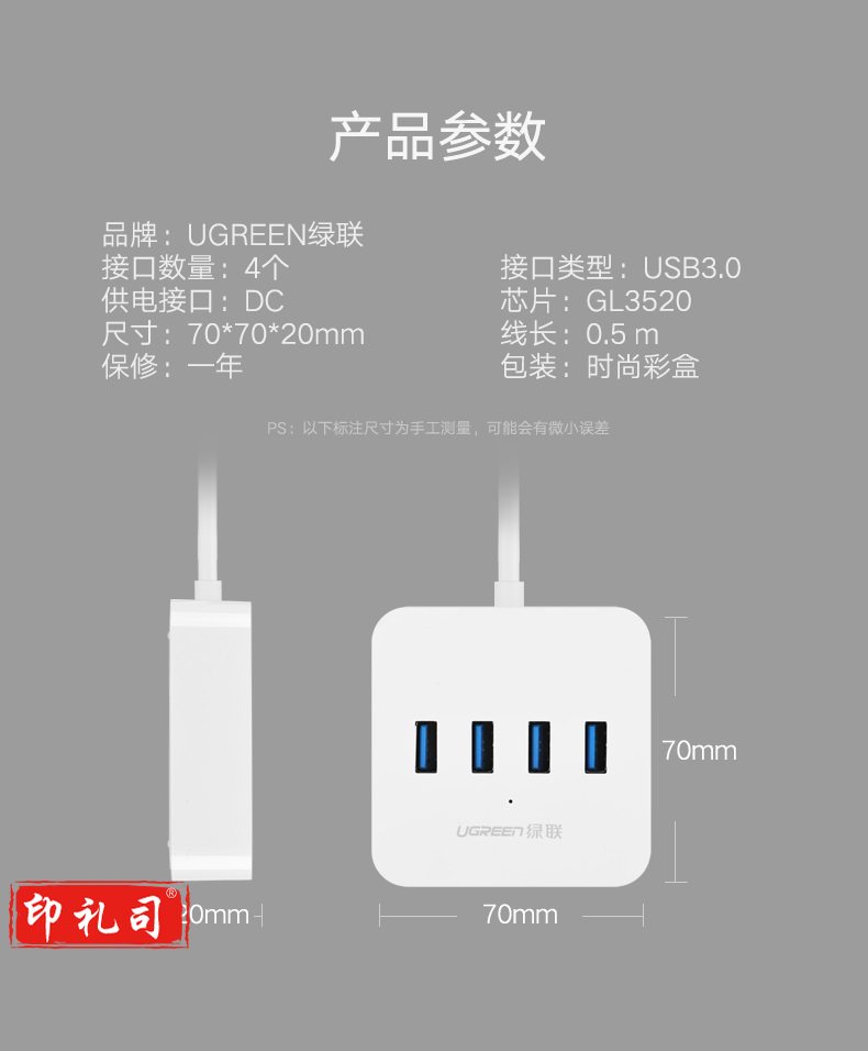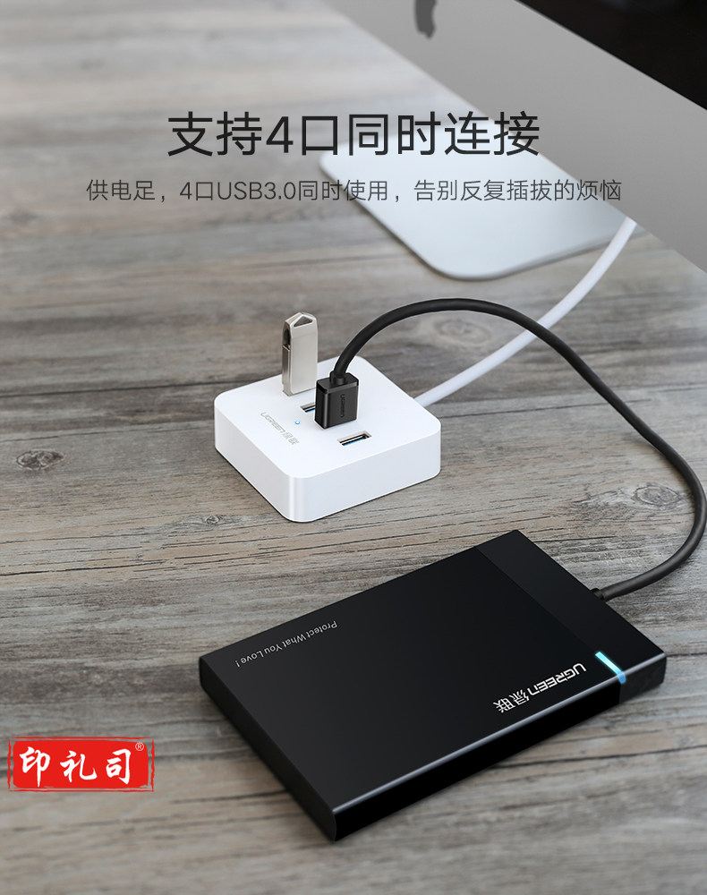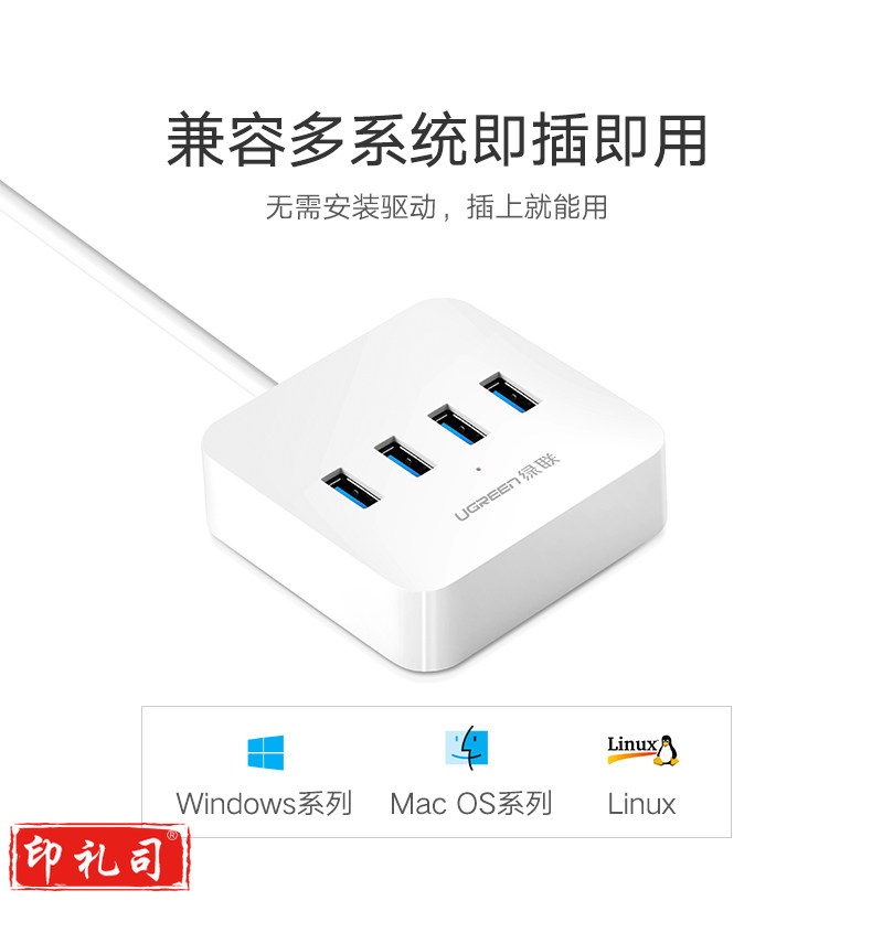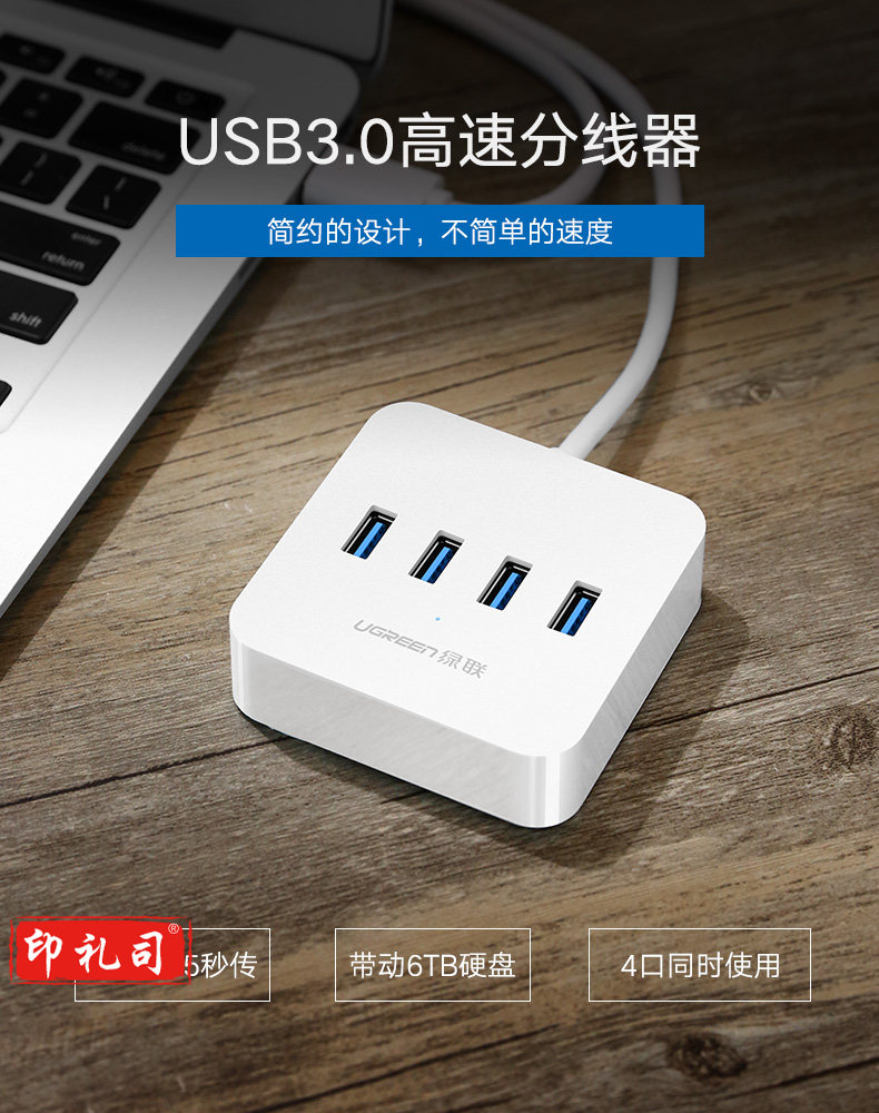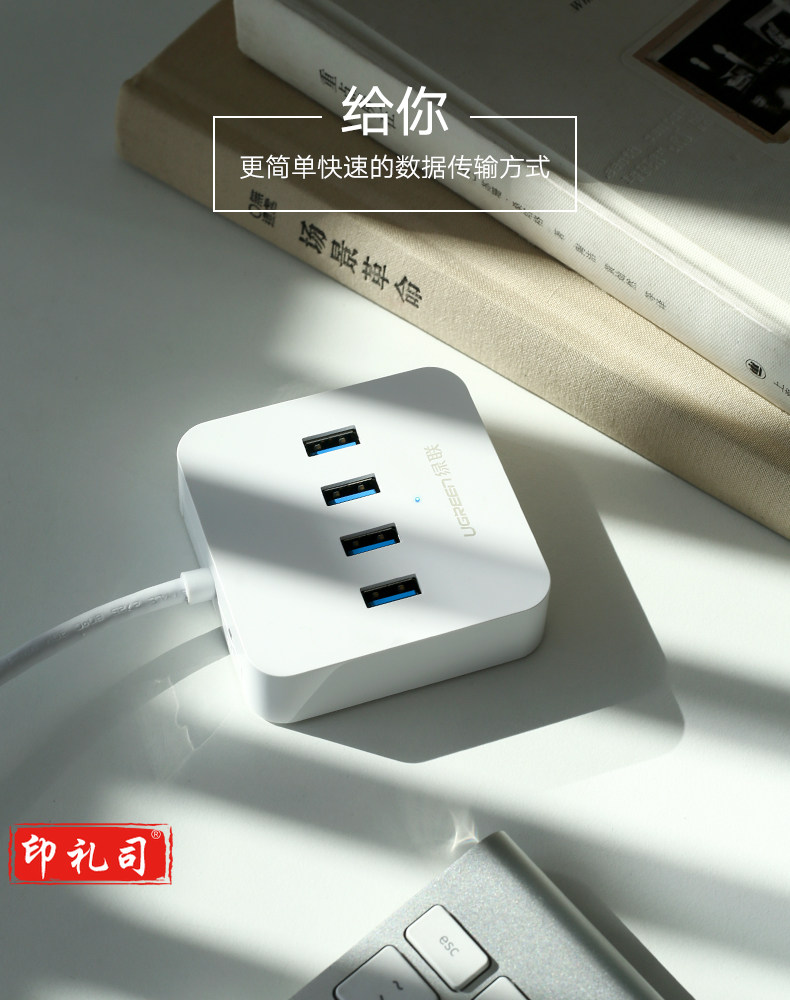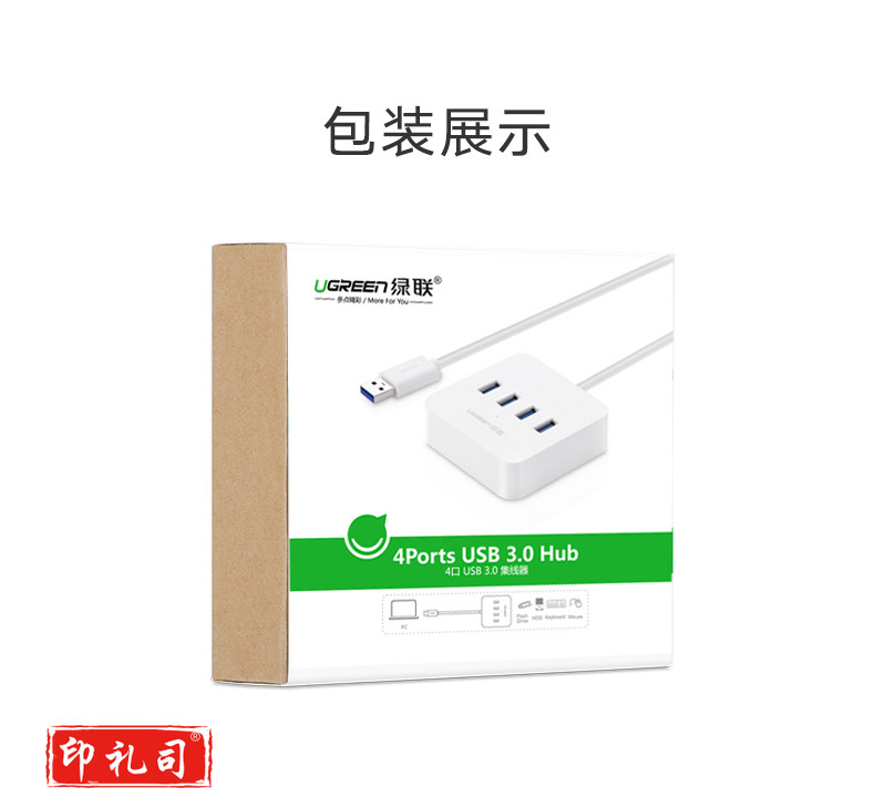 1100696856EA 绿联 30201 集线器 分线器 USB3.0 HUB 4口 0.5米 白色