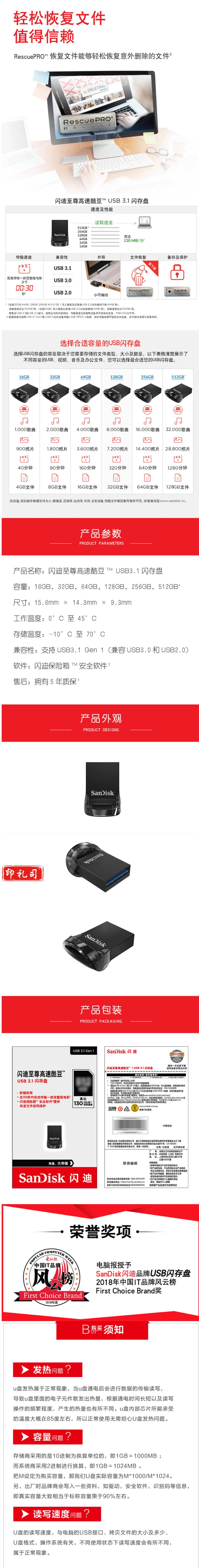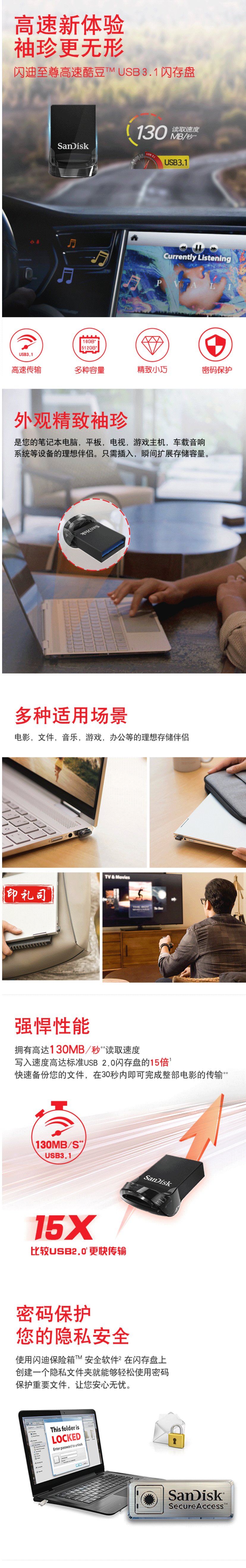 闪迪(SanDisk) CZ430酷豆 32GB USB3.1 U盘 读速130MB/s