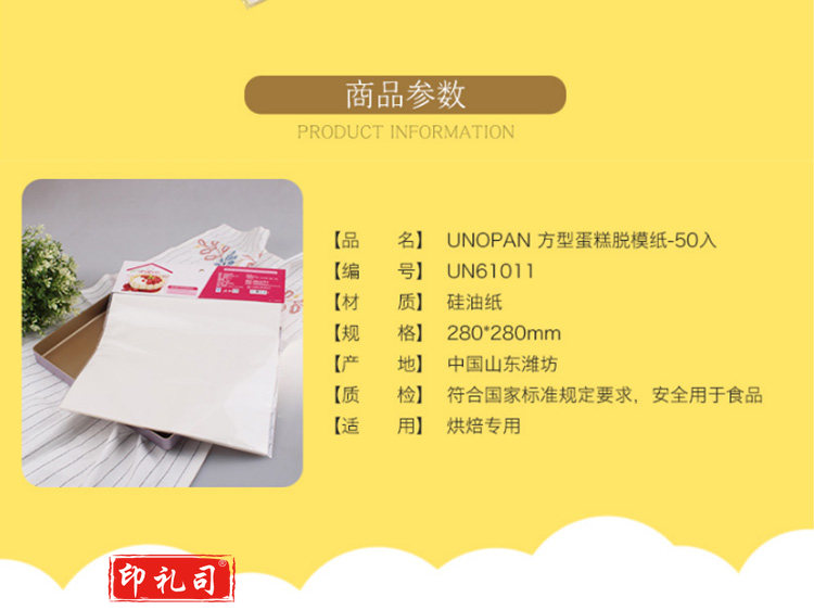 UN61011方形蛋糕脱模纸28*28cm烤盘纸硅油纸垫烤箱用纸50张