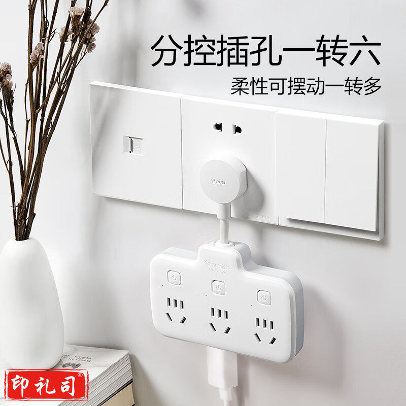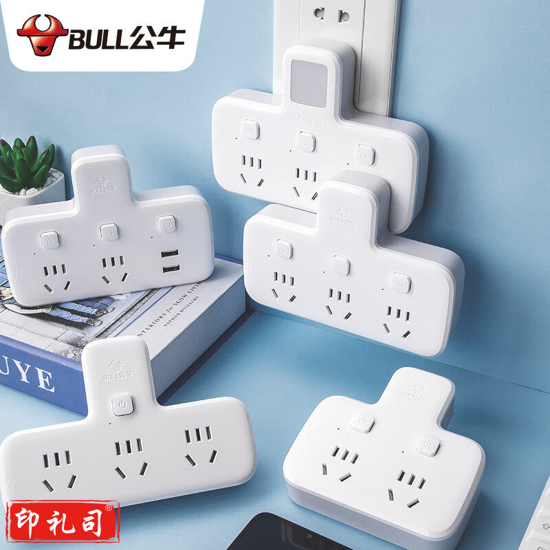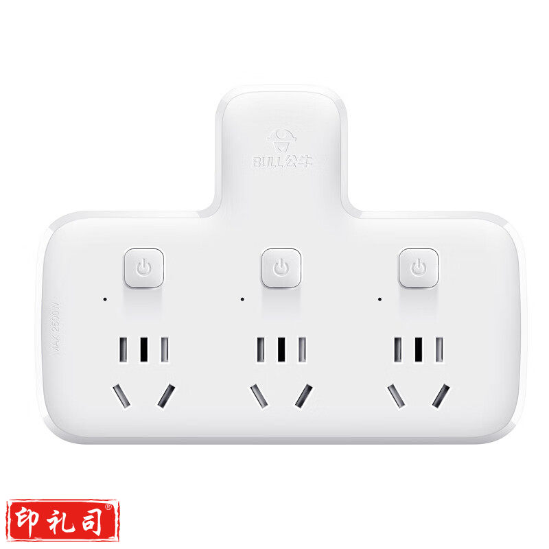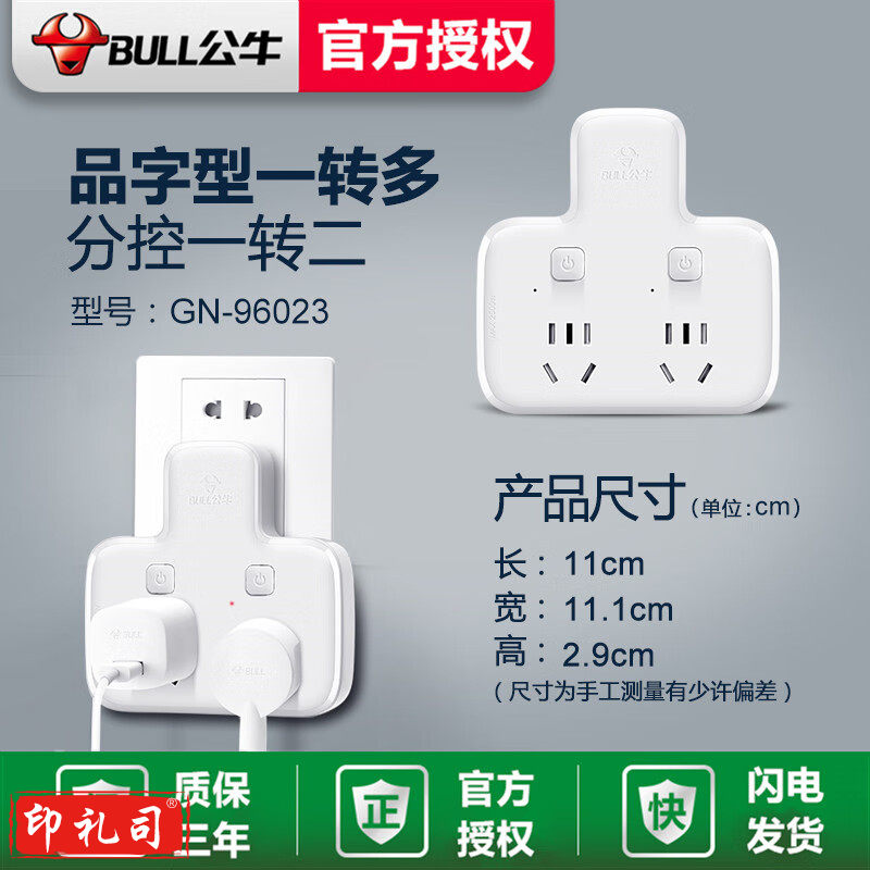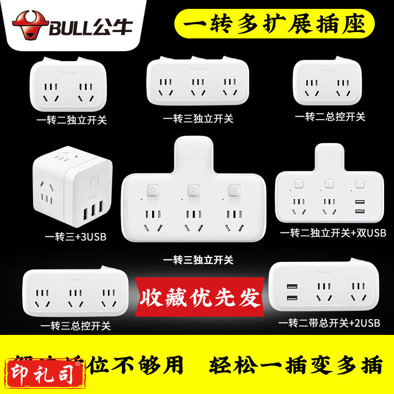 公牛插座 一转多 大功率转换器 一转二三多孔电源插头 多功能排插线板面板 gn-96023 一转二 独立开关