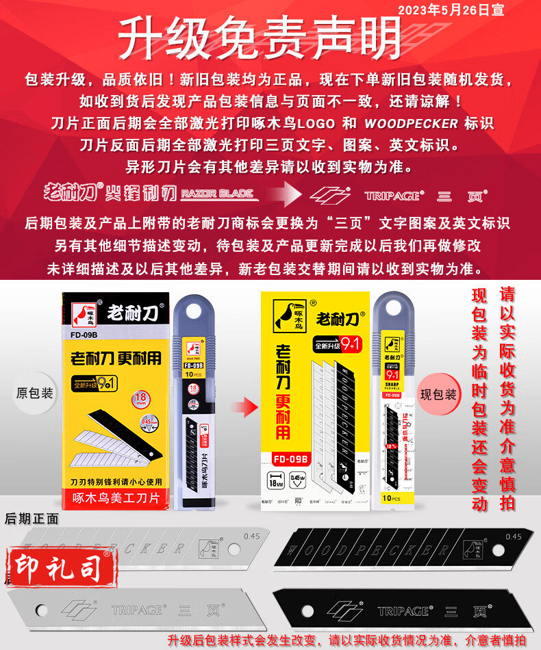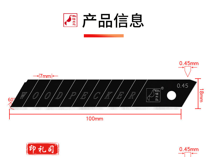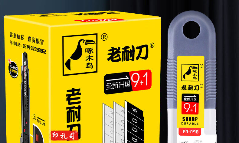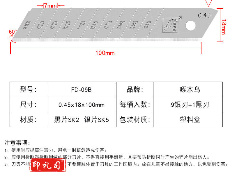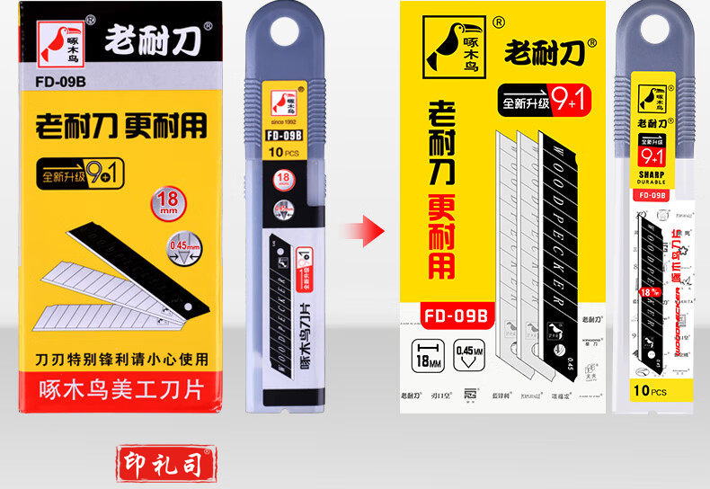 啄木鸟 美工刀片 FD-09B壁纸刀片 工业用18mm大号墙纸刀片 0.45mm厚 1盒10片无赠品