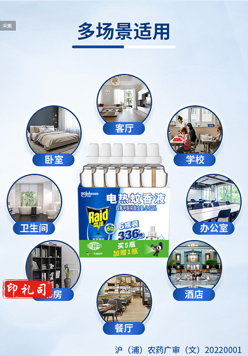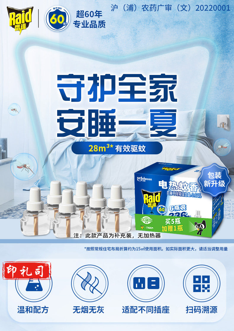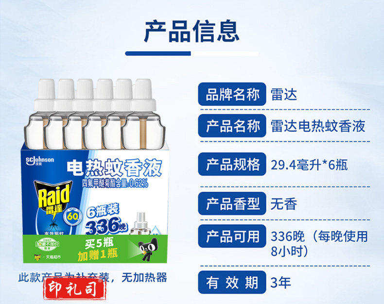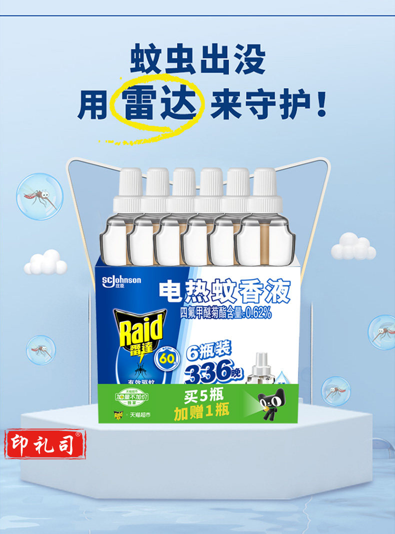 【雷达雷达 电蚊香液 替换装 6瓶装 336晚 无香型】雷达(Raid) 电蚊香液 替换装 336晚6瓶装 无香型