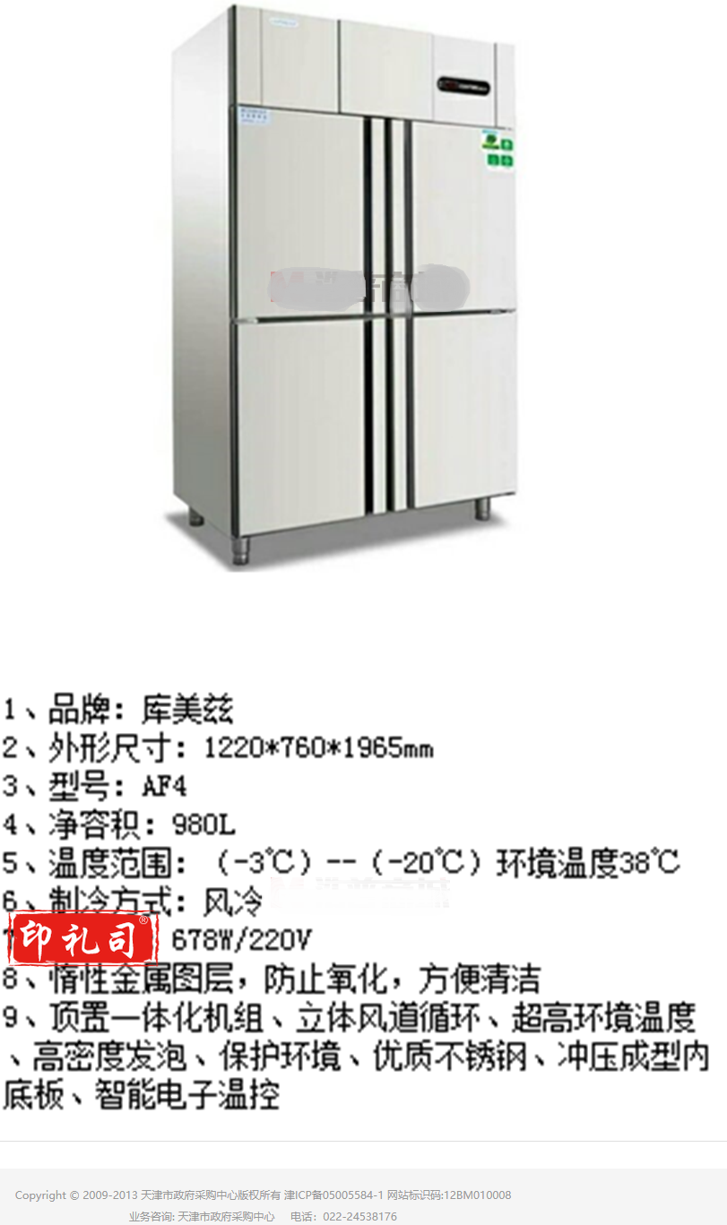 美厨 AF4 欧款风冷 四门冷柜 1220*765*1965zhygh_Q21600059