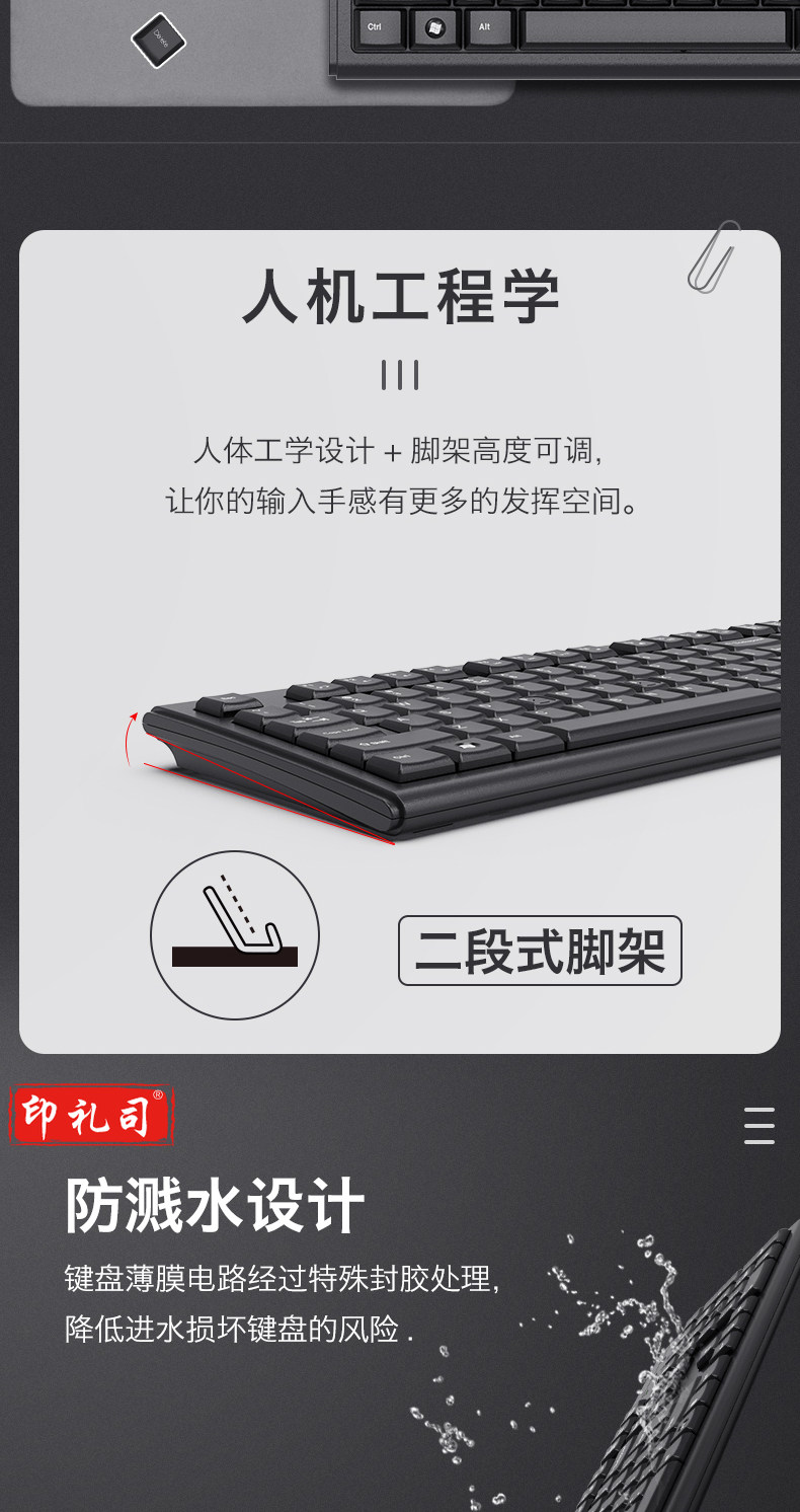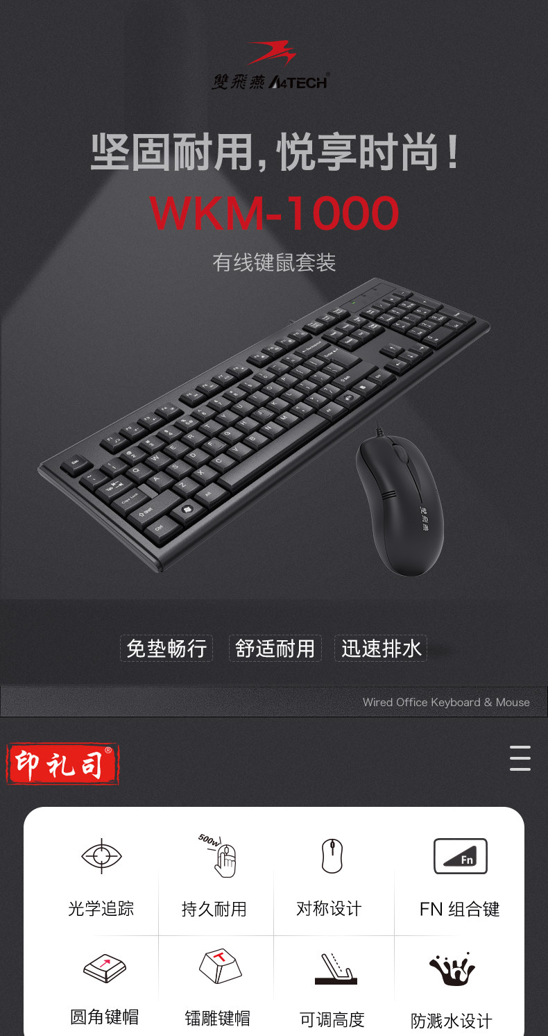 双飞燕(TECH)WKM-1000 键鼠套装 有线键鼠套装 办公键鼠套装 便携 防泼溅 商务 黑色