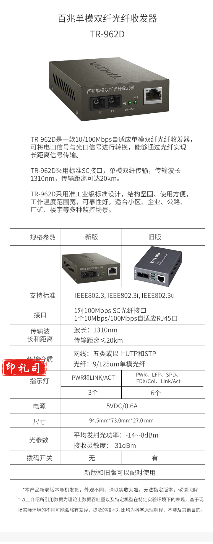 TP-LINK TR-962D 百兆单模光纤收发器(单位:个)230912152529
