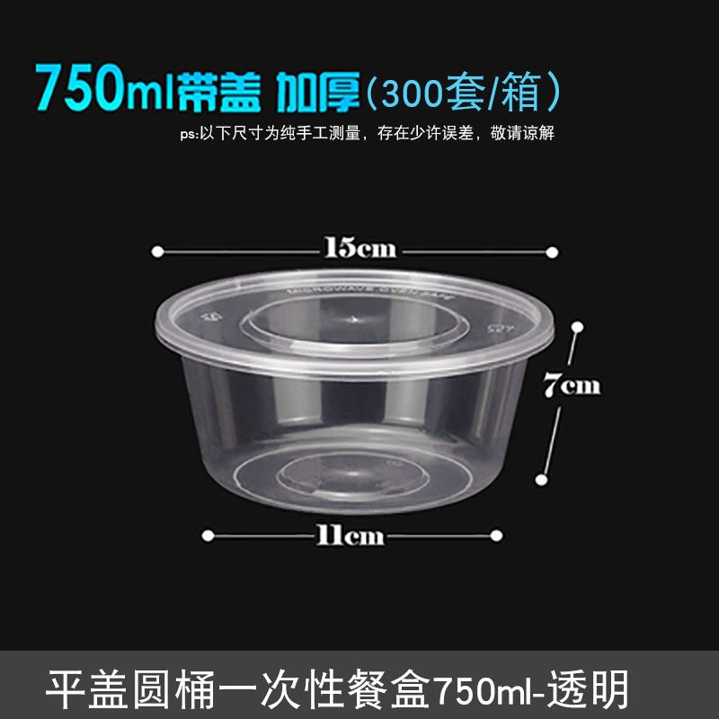 瑞雪康一次性餐盒圆形透明餐盒750ml带盖餐具300套/箱整箱起送
