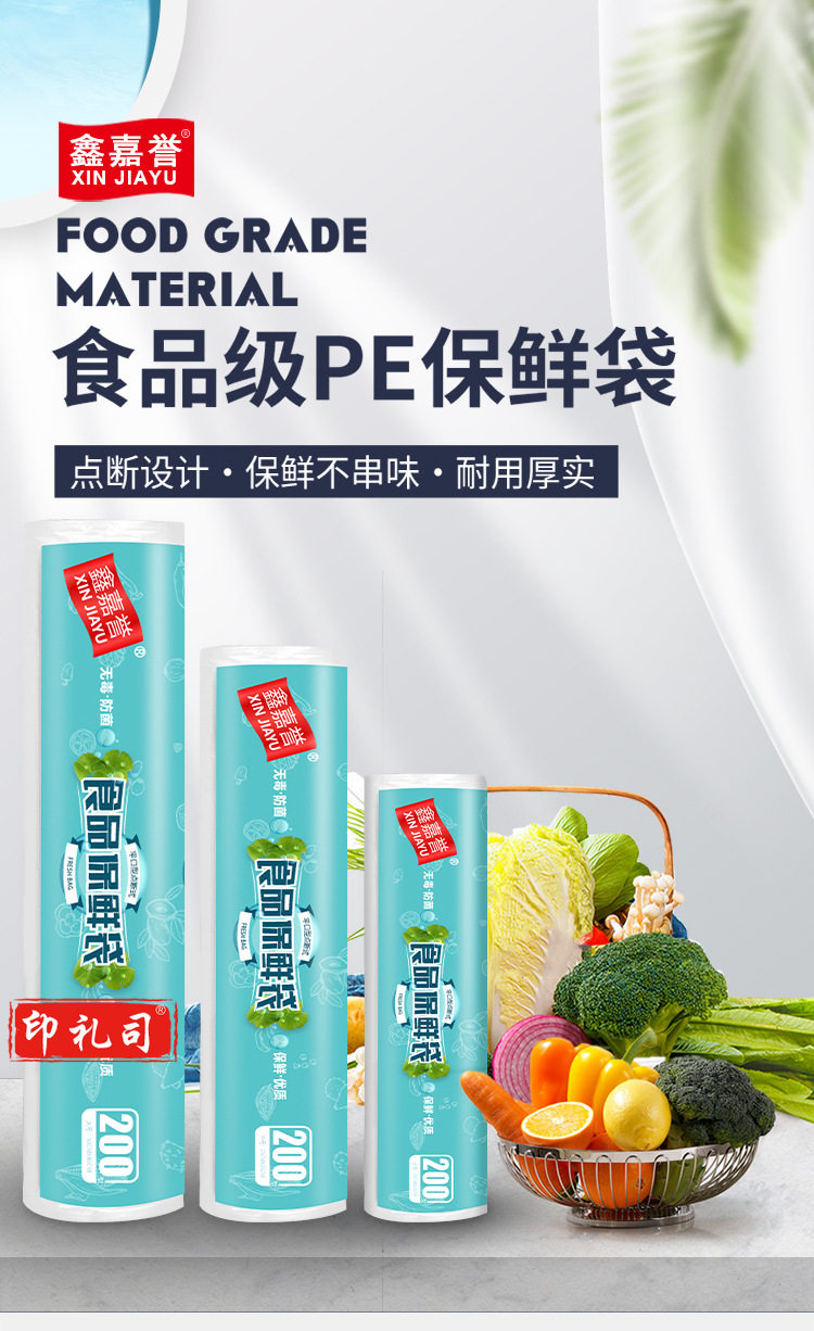 鑫嘉誉保鲜袋 200个装食品级一次性食品袋平口点断式大号30*40cm(5卷起售)