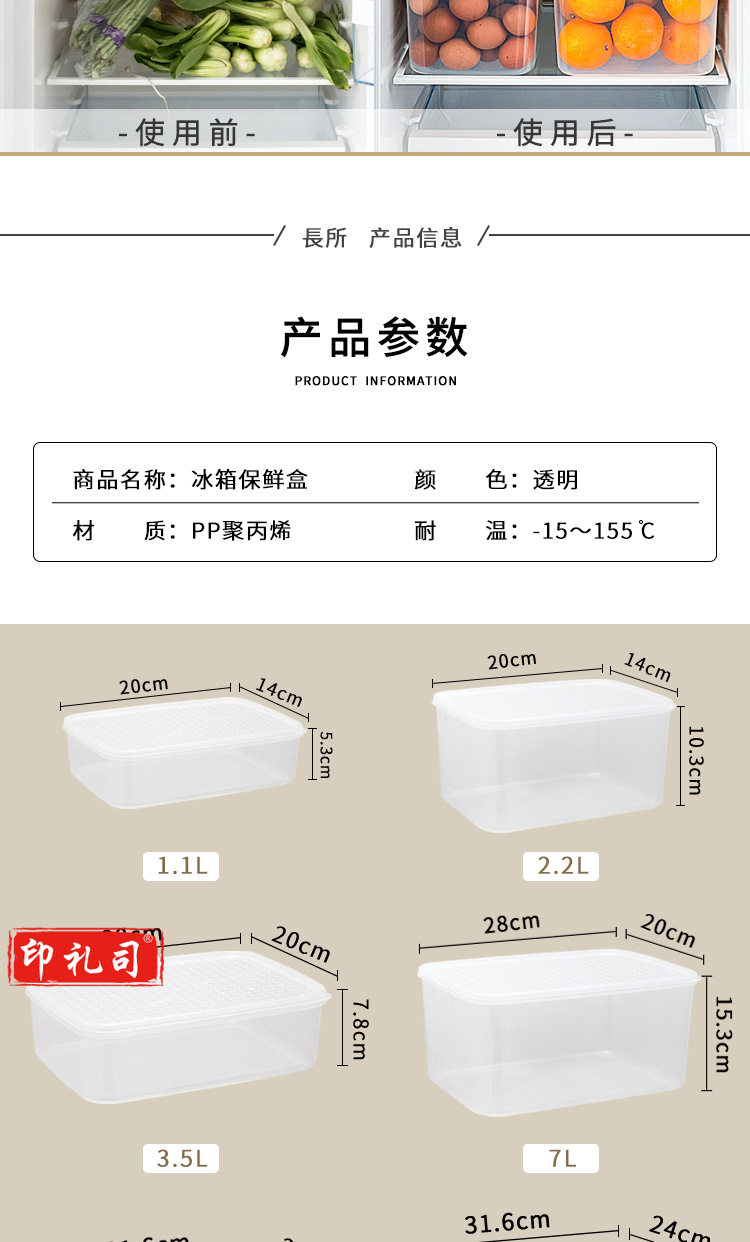 保鲜盒冰箱专用冷藏食品收纳盒 28*20*15.3cm 7L 两个起售